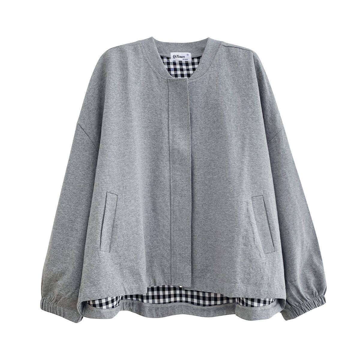 ジャケット オータムカジュアルルーズ格子柄トップス 秋物 クレセントシティ86425544299