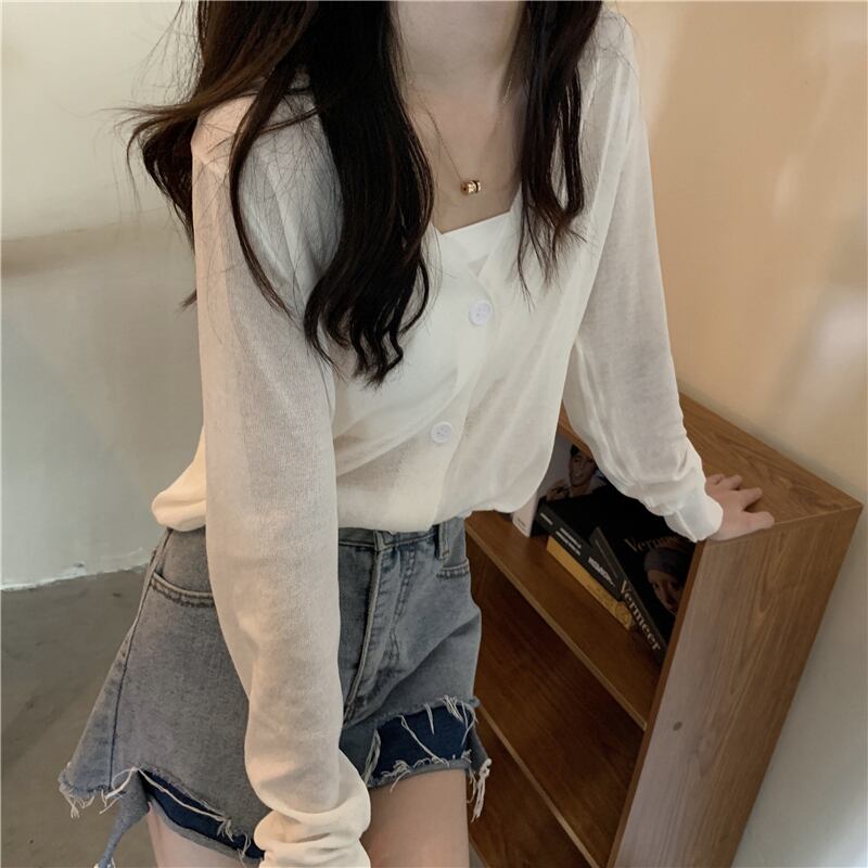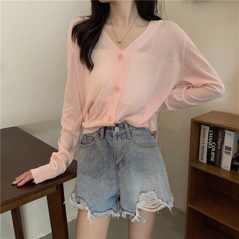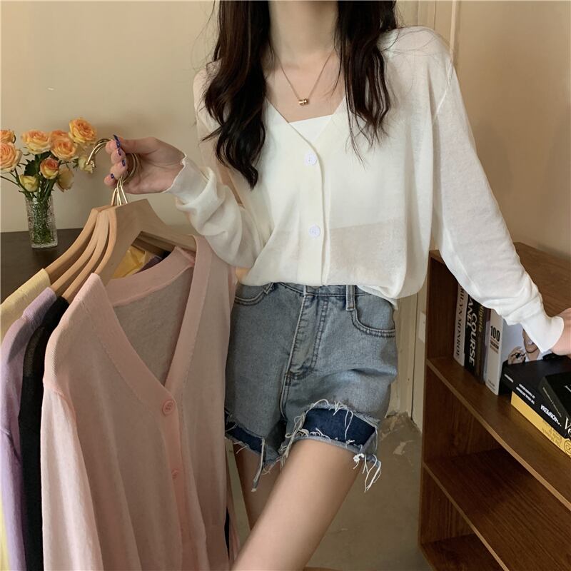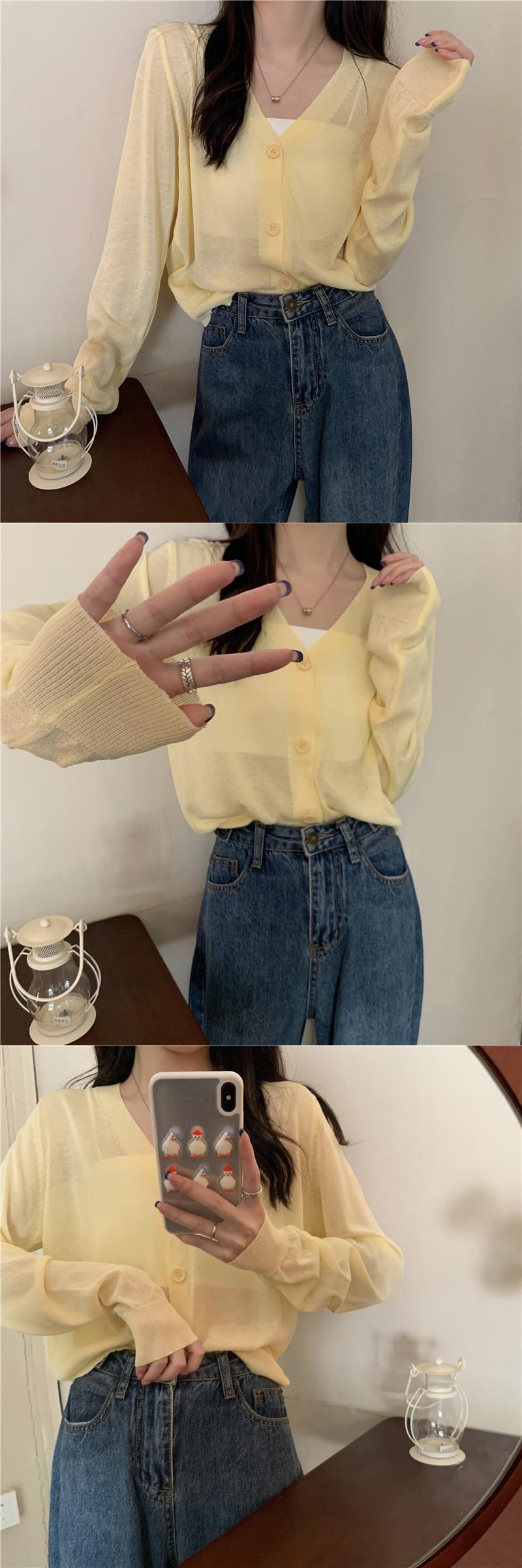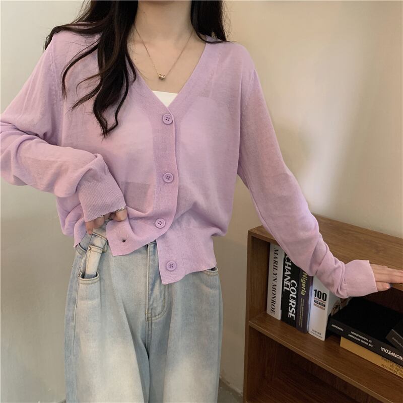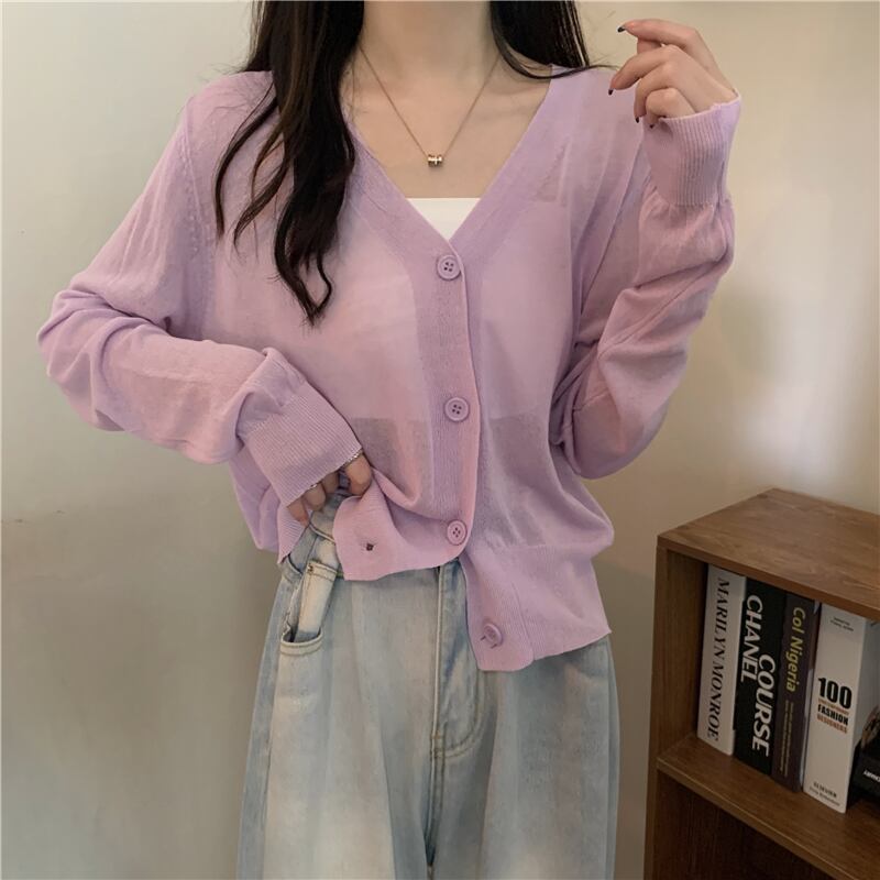 カラー薄手ジャケット サマールーズVネックニットカーディガン ロング 夏物 クレセントシティ26920458877