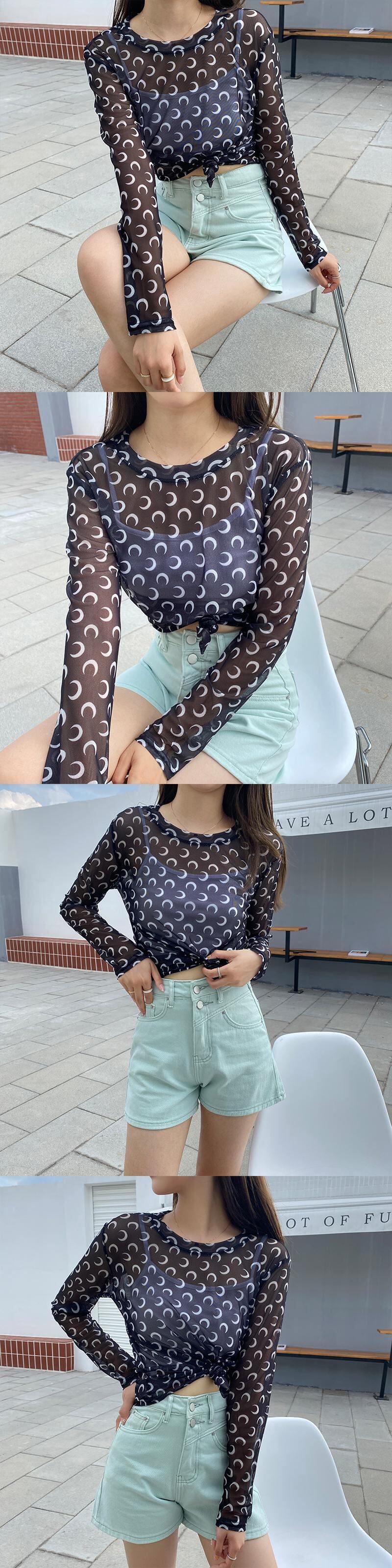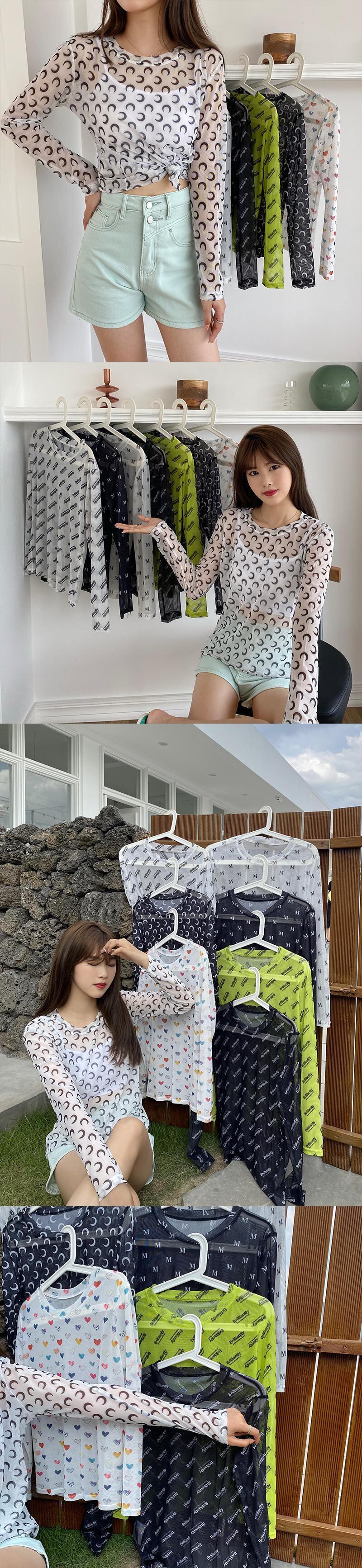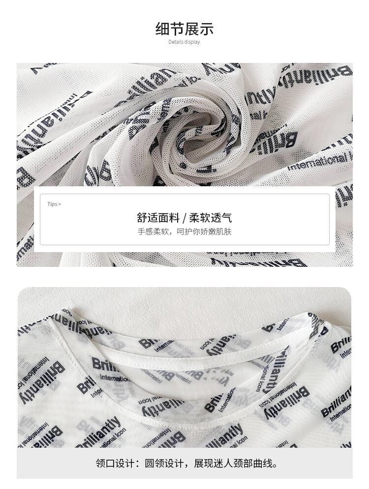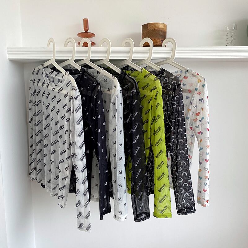 カラー薄手長袖スリーブメッシュTシャツ サマールーズラウンドネックトップス ロング 夏物 Oネック クレセントシティ81655900013