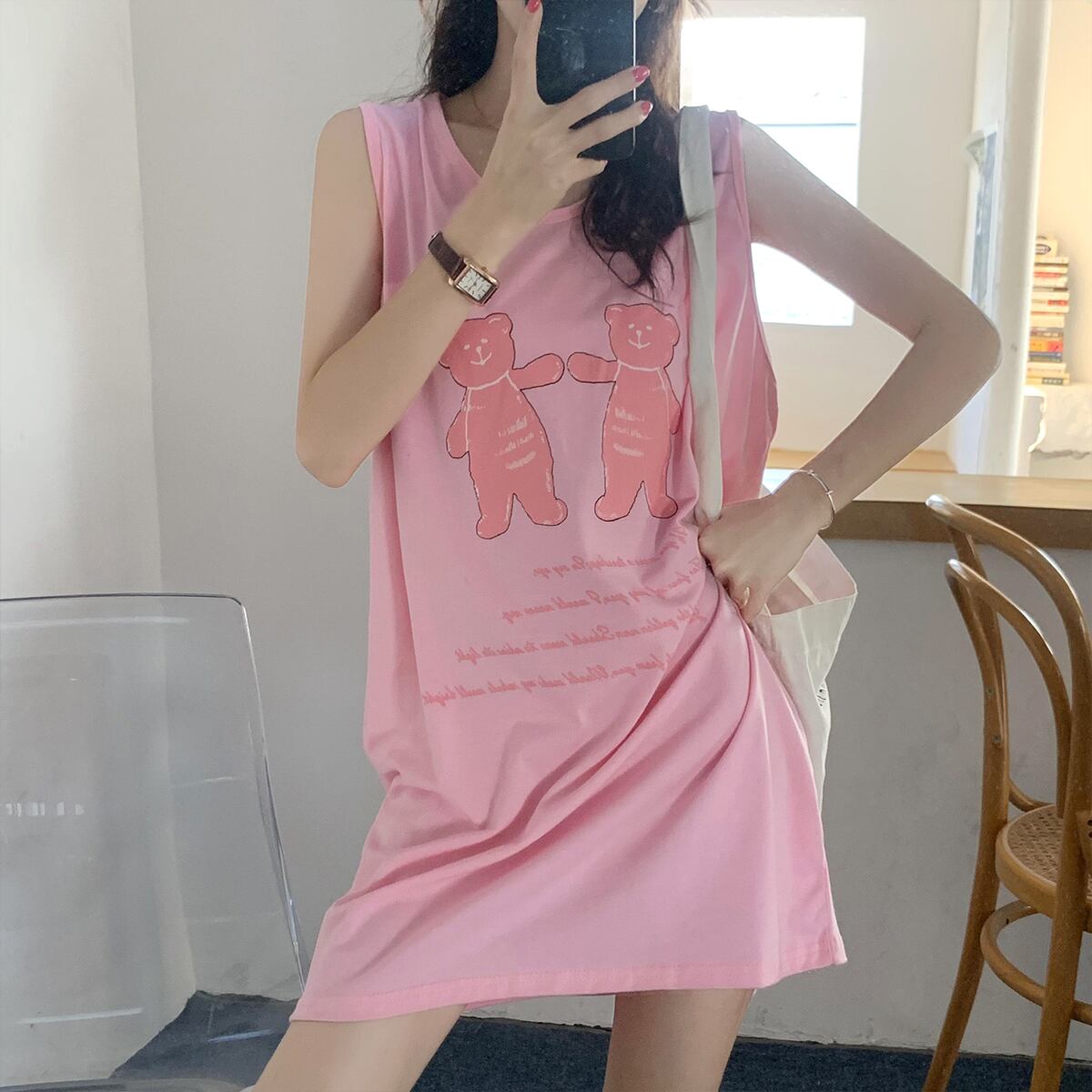 プリント柄ノースリーブTシャツ サマールーズ薄手トップス 夏物 クレセントシティ8617794067