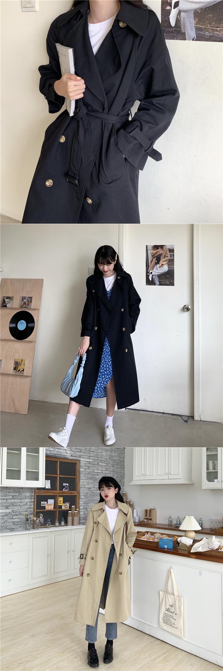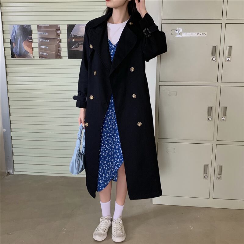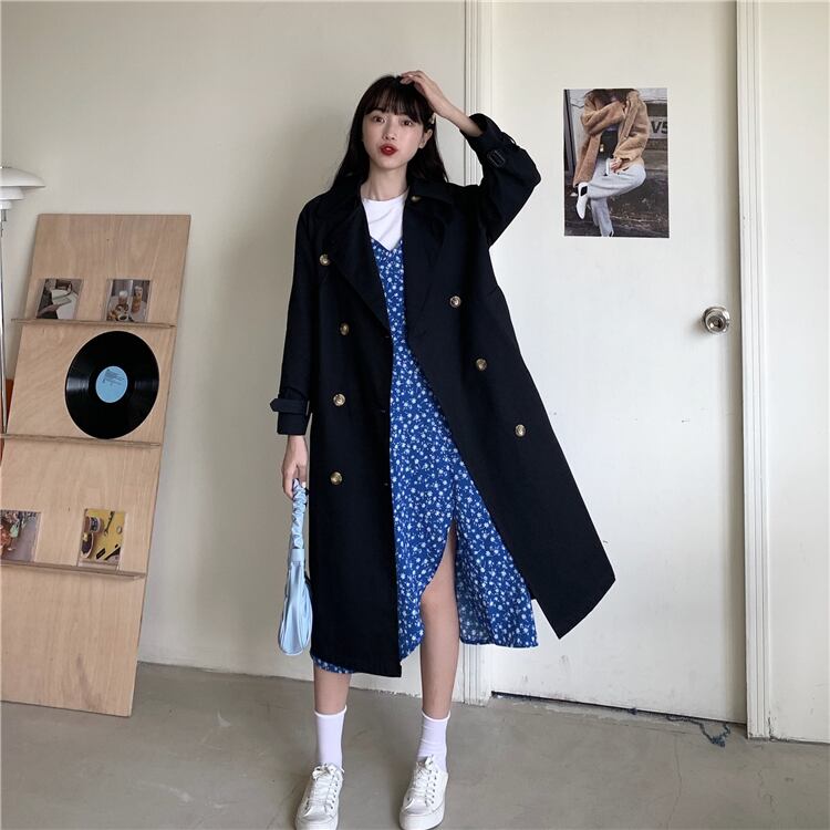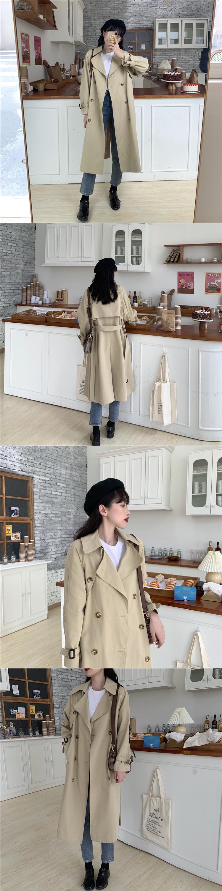 スタンダードダブルブレストコート オータムスタイルルーズウェストロング レトロ 秋物 クレセントシティ55068984716