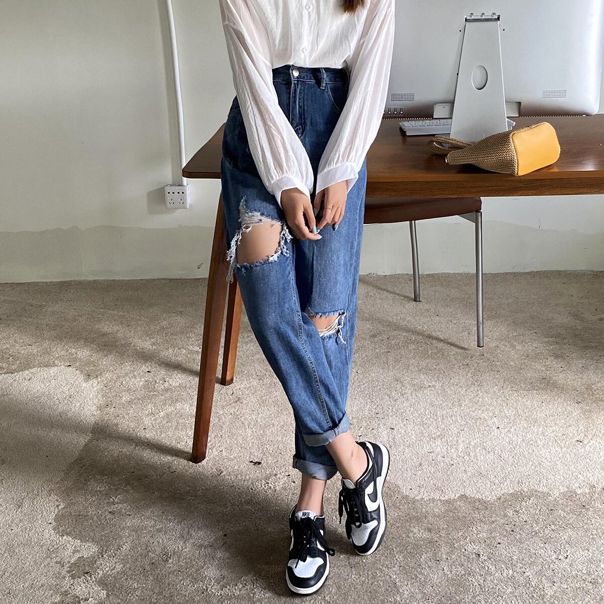 ジーンズ サマーストレッチウェスト薄手ルーズパンツ エラスティック 伸縮 夏物 クレセントシティ7066562477
