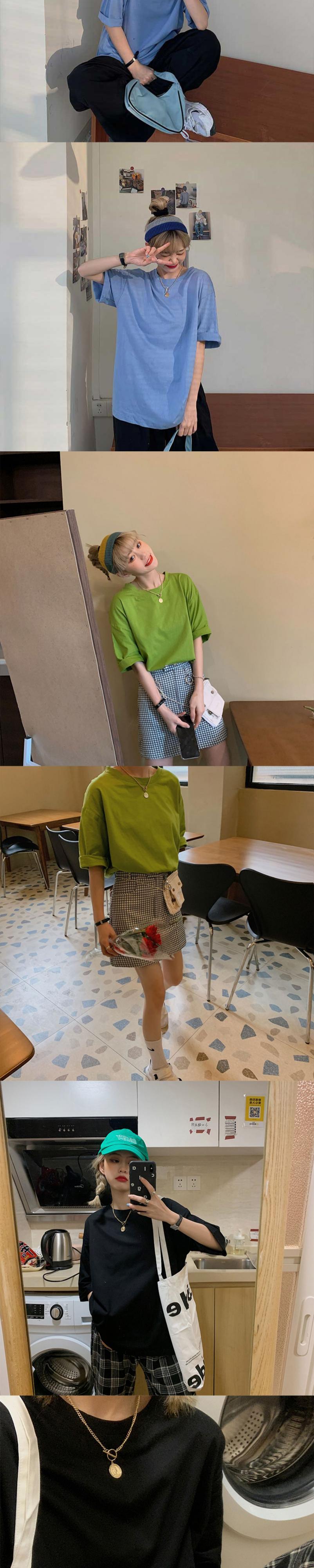 Tシャツ レディースサマールーズ薄手カジュアルソリッド カラートップス コットン 夏物 ソリッドカラー クレセントシティ58795560058