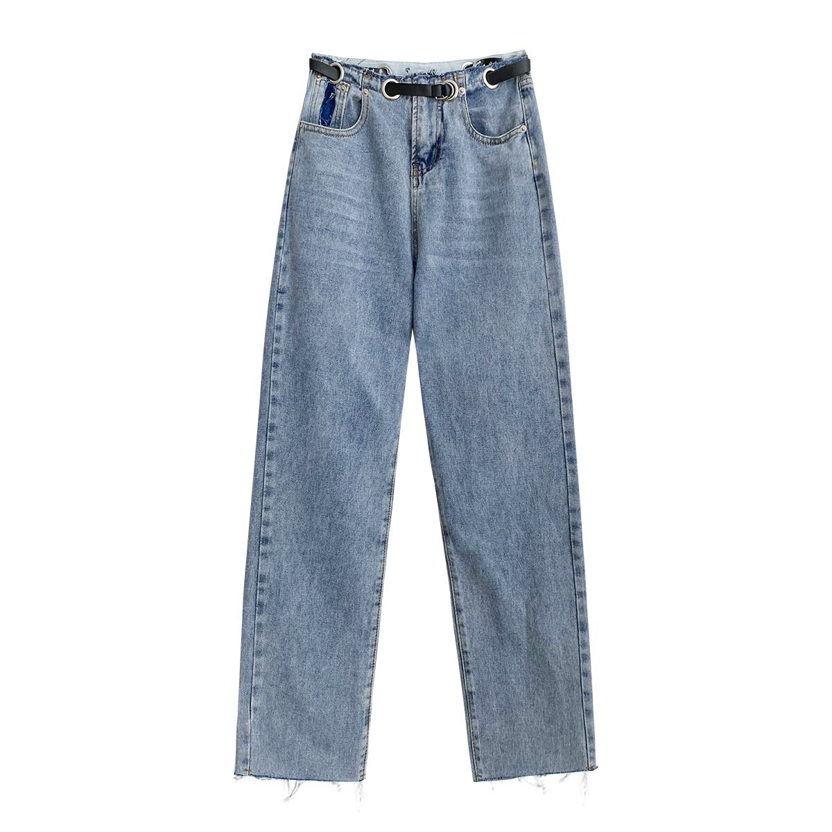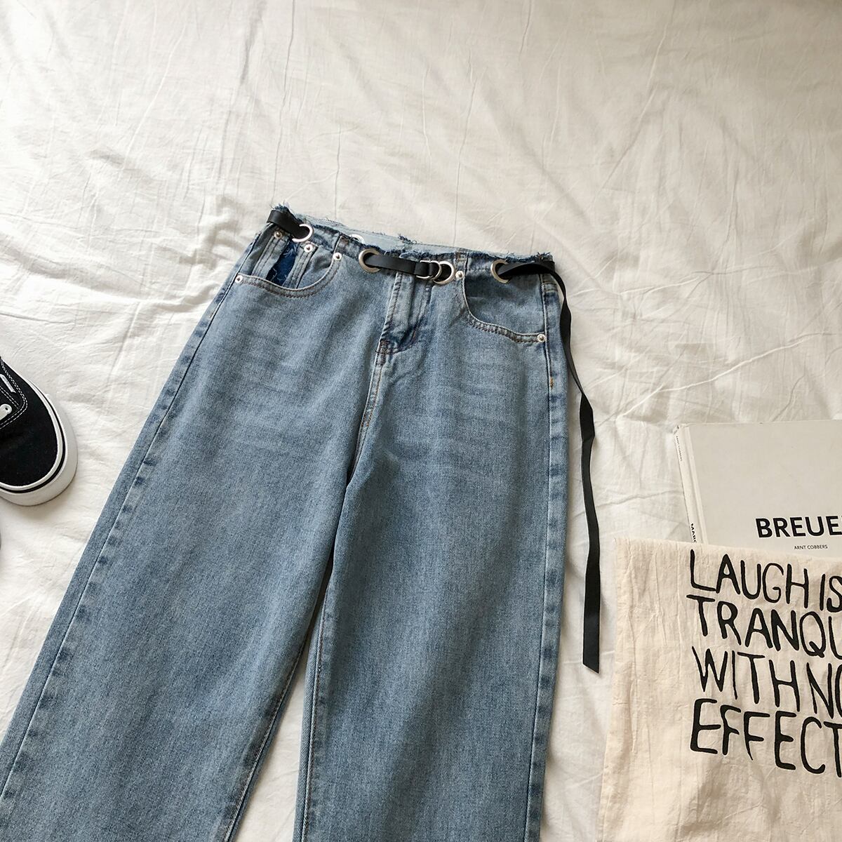 ブラックジーンズ ルーズ薄手ハイウェストパンツ ベルト ハーネス クレセントシティ17508641087