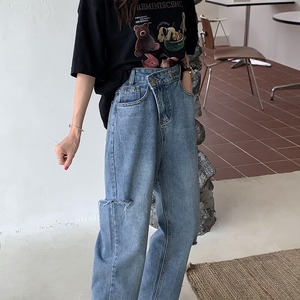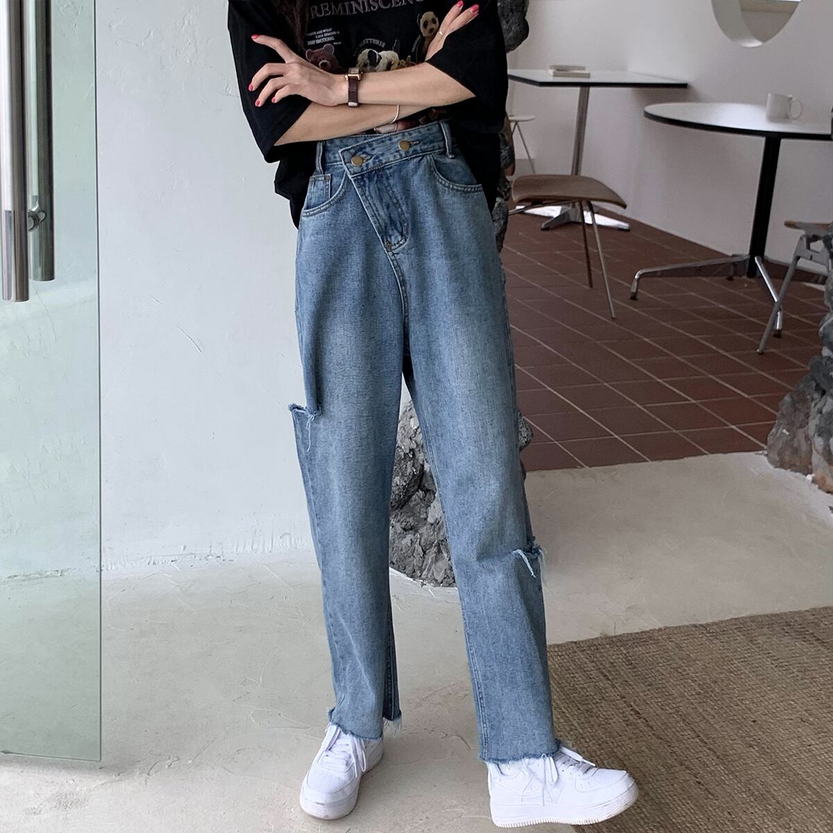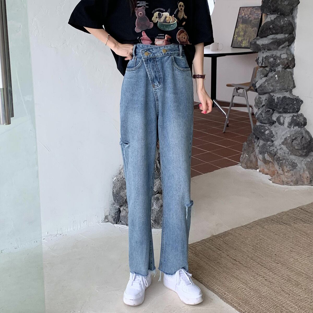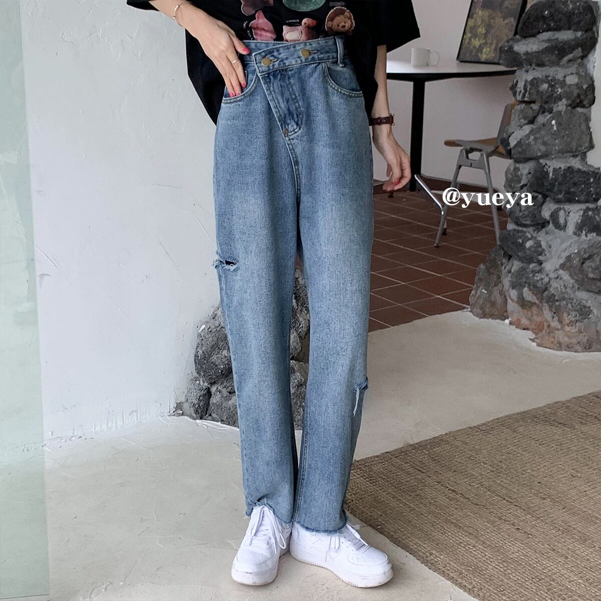 バックルジーンズ レディースサマー薄手ルーズスタンダードパンツ ハイウェスト レトロ 夏物 クレセントシティ82169192887