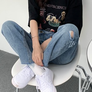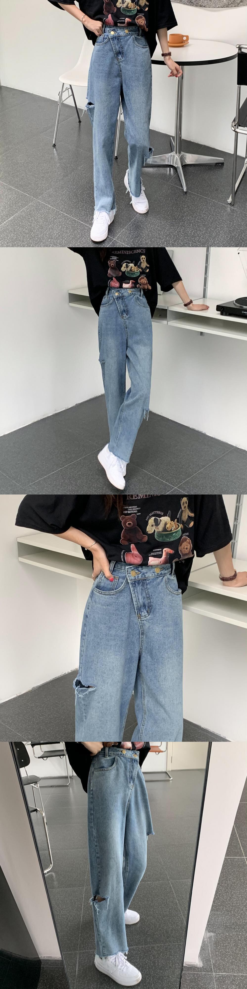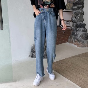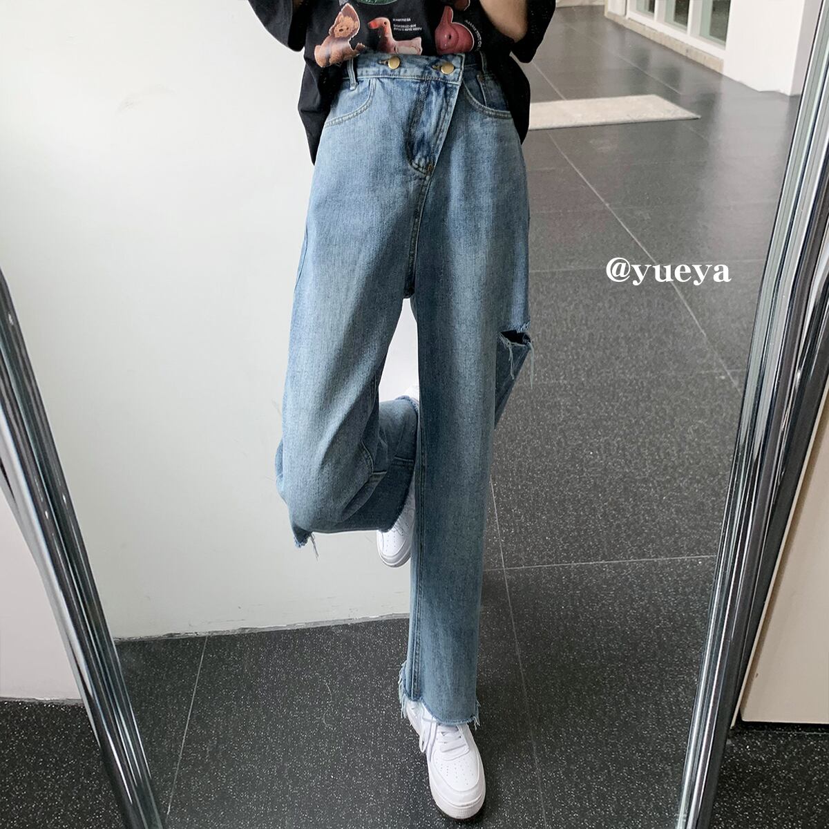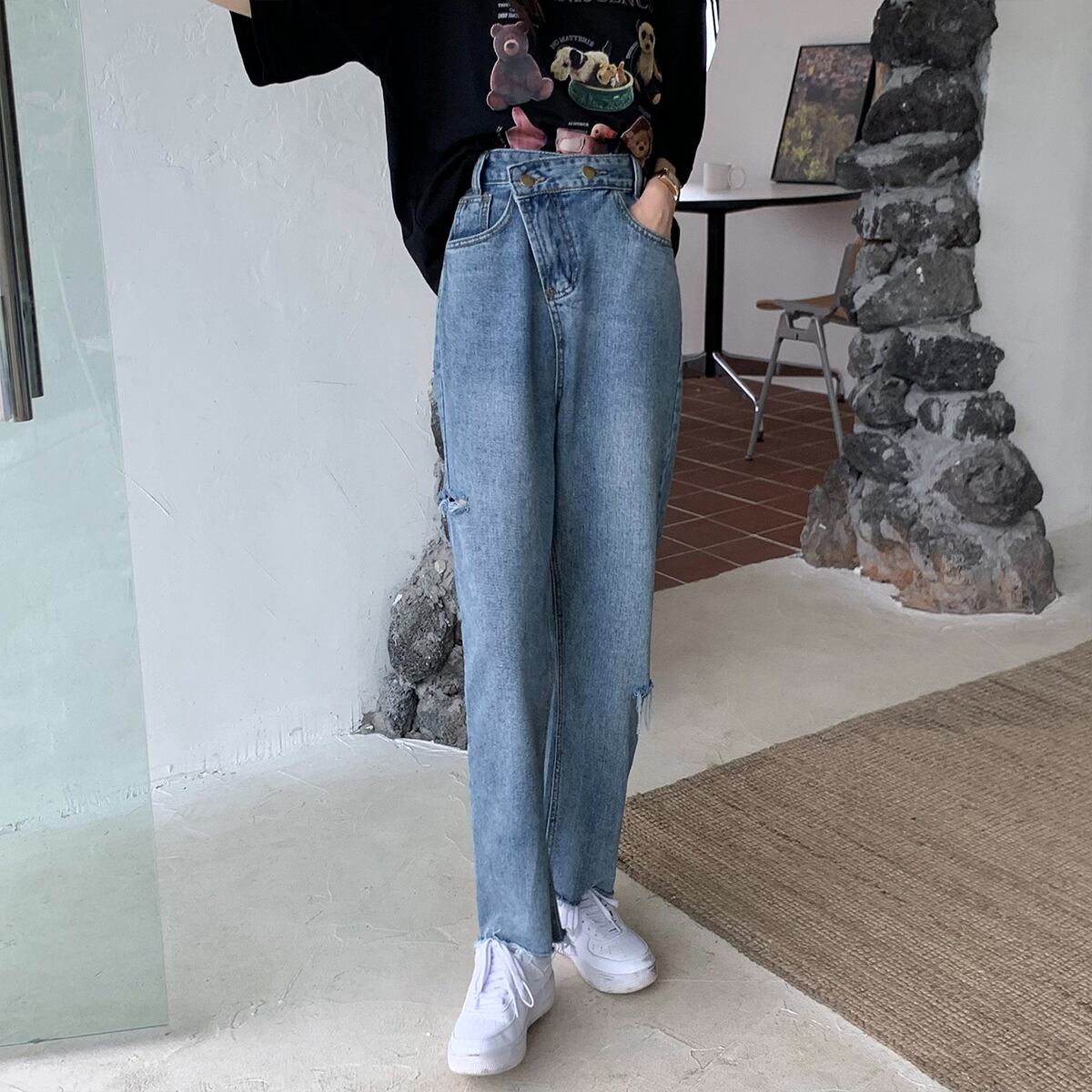 バックルジーンズ レディースサマー薄手ルーズスタンダードパンツ ハイウェスト レトロ 夏物 クレセントシティ82169192887