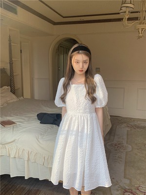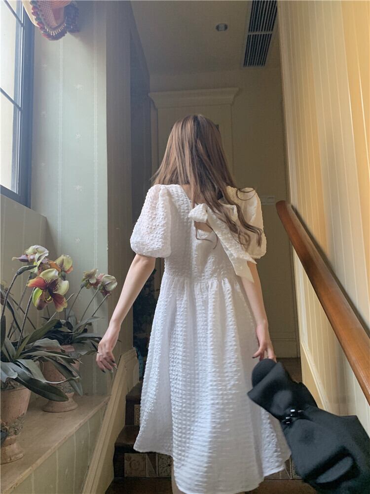 スリーブドレス サマーリボンホルターウェストホワイトAライン 夏物 スクウェア クレセントシティ71129101962