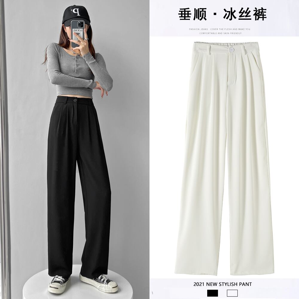 ホワイトパンツ サマー薄手ルーズハイウェストカジュアル 夏物 クレセントシティ11923873533