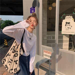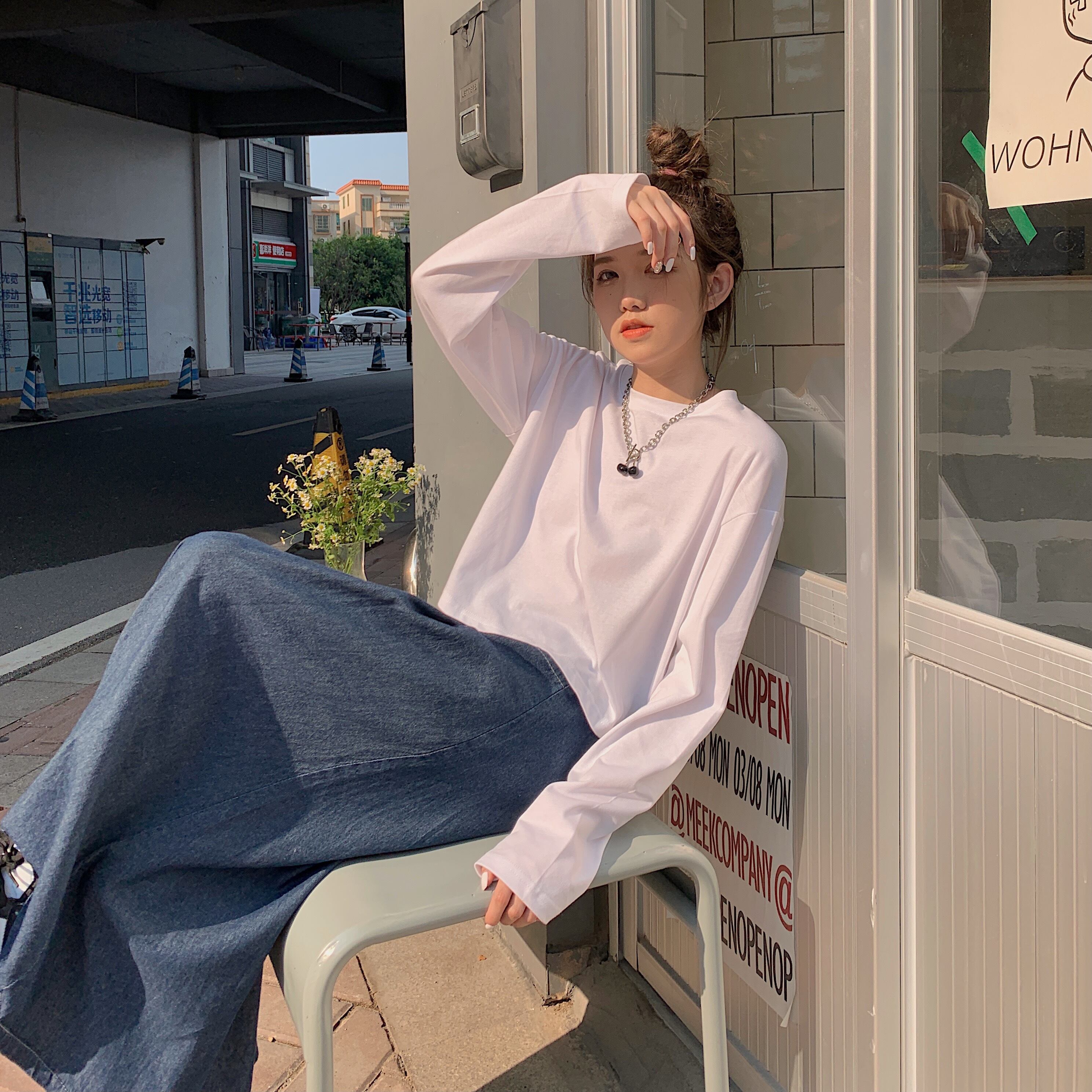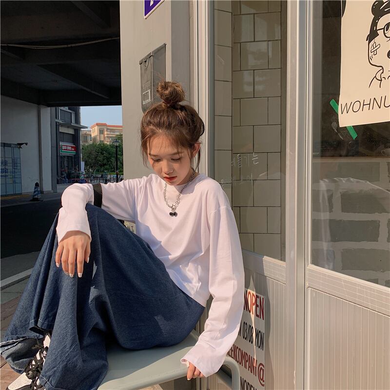 ホワイトTシャツ シャツ オータム薄手ルーズショートプルオーバー トップス ロング 秋物 クレセントシティ38545047382