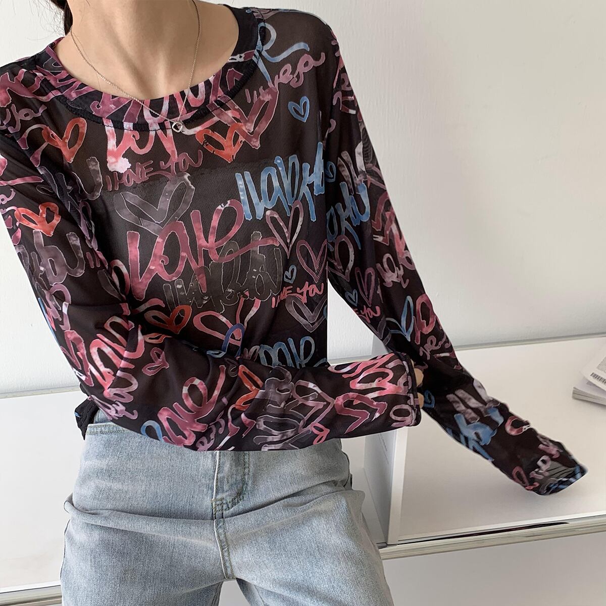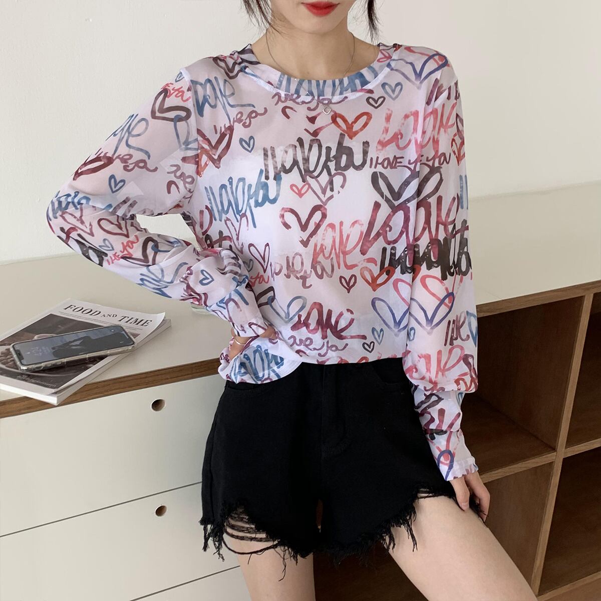 Tシャツ シャツ サマーカジュアルルーズ薄手トップス ロング 夏物 シルク クレセントシティ1927663106