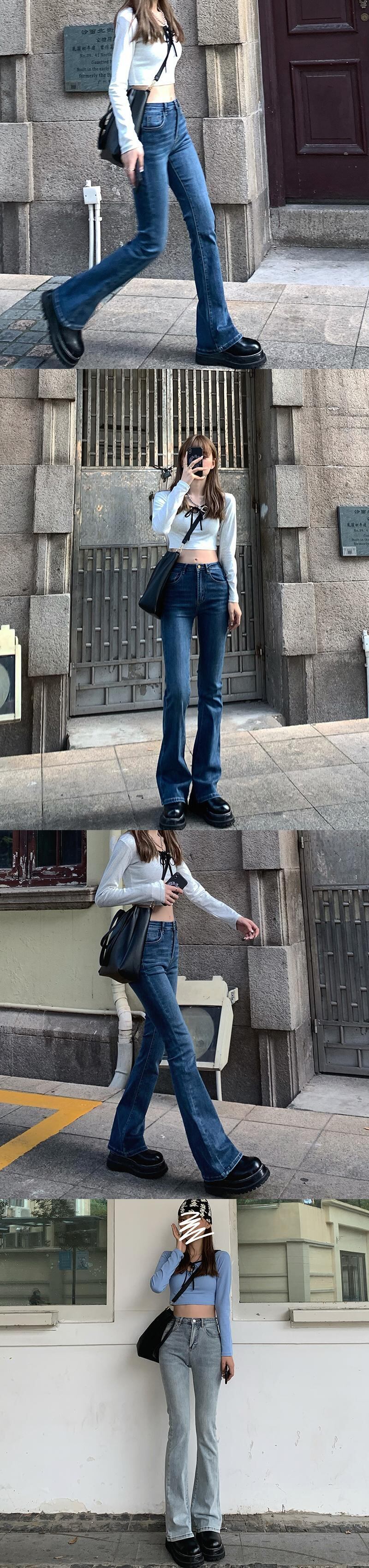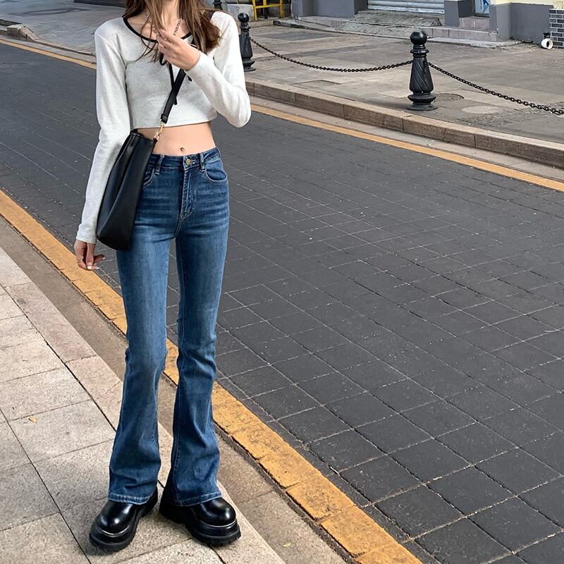 スキニージーンズ オータムスタンダードハイウェスト薄手パンツ レッド レトロ 秋物 クレセントシティ43673872865
