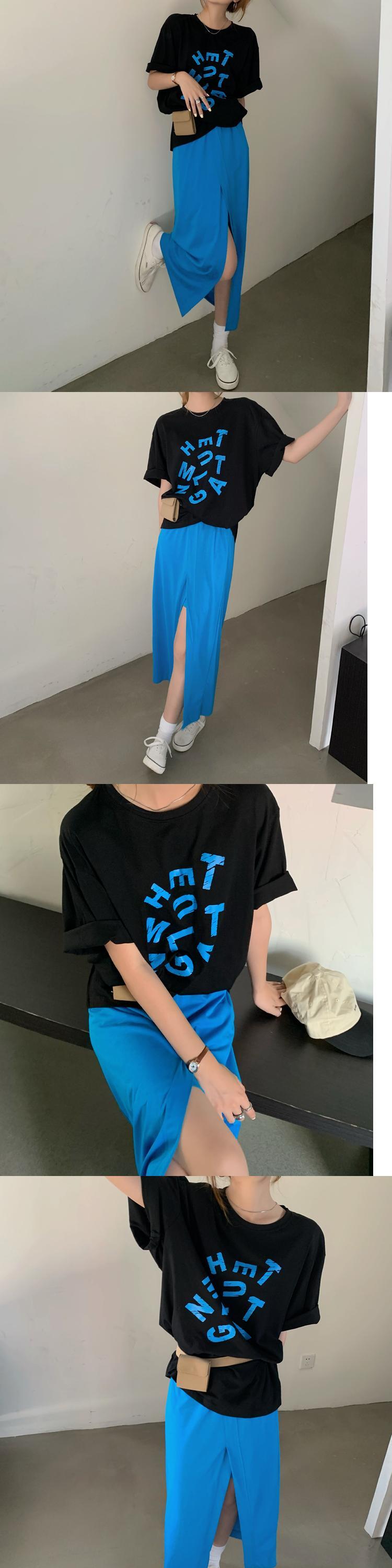 スカート サマープリントTシャツ ハイウェストロングソリッド カラーAライン 夏物 ソリッドカラー クレセントシティ38937547972