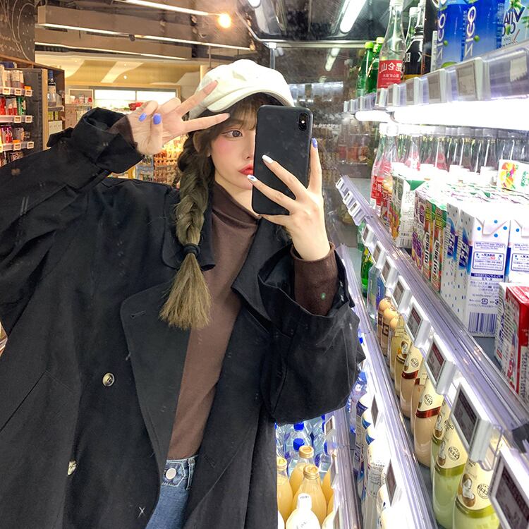 ソリッド カラーダブルブレストオータムVネックルーズ薄手カジュアルジャケット 秋物 ソリッドカラー クレセントシティ49043042445