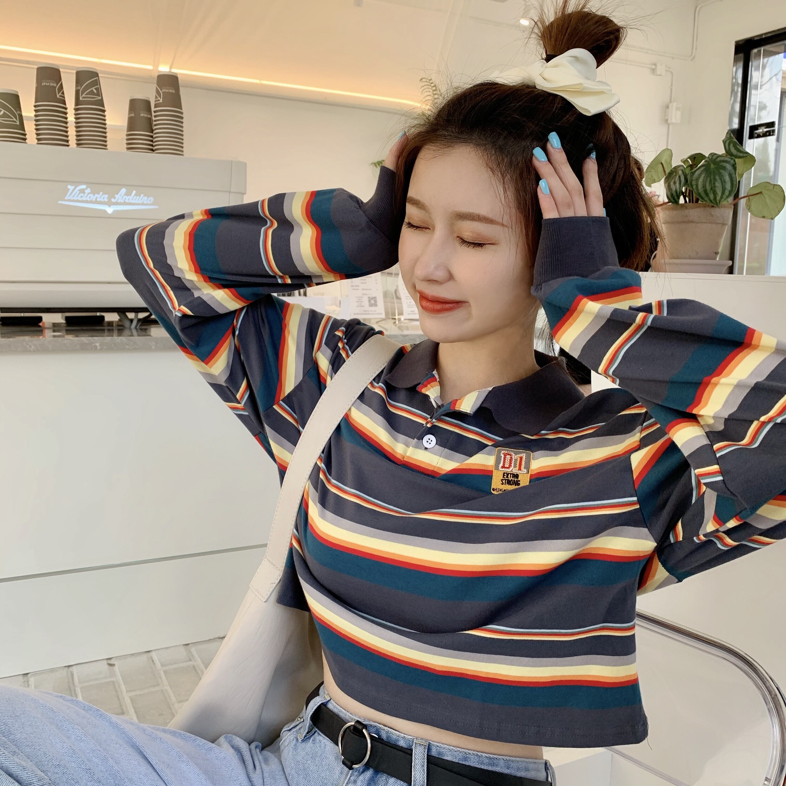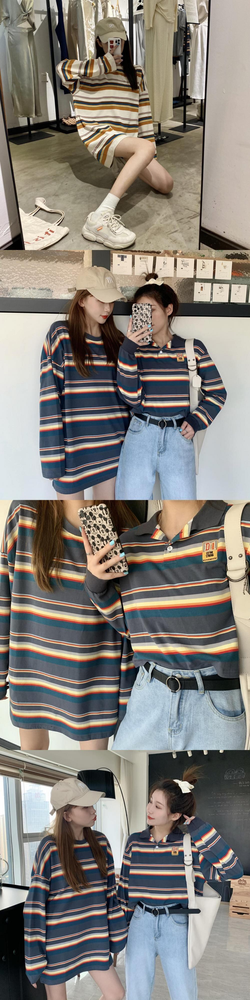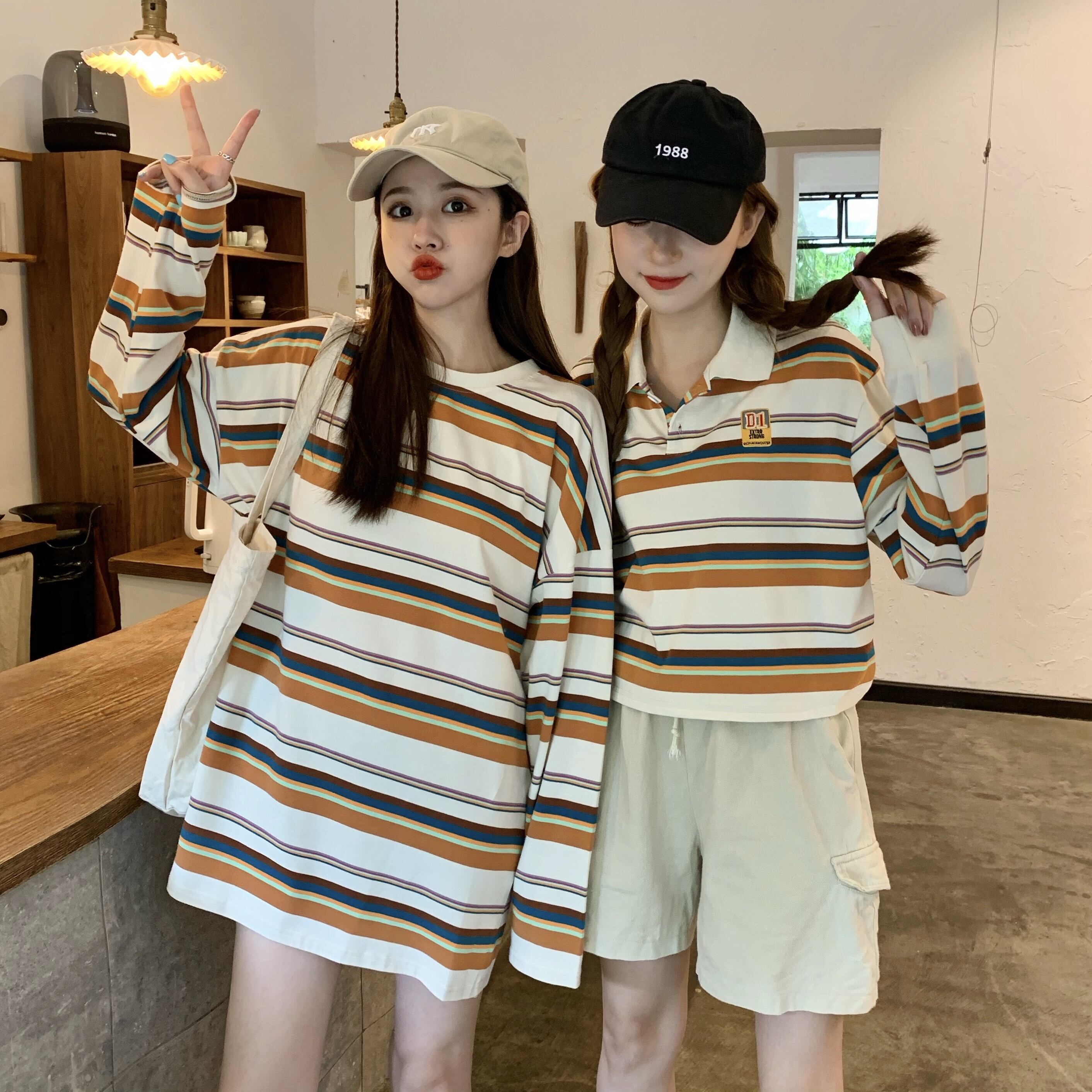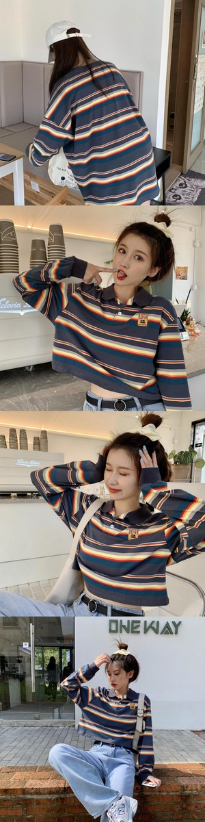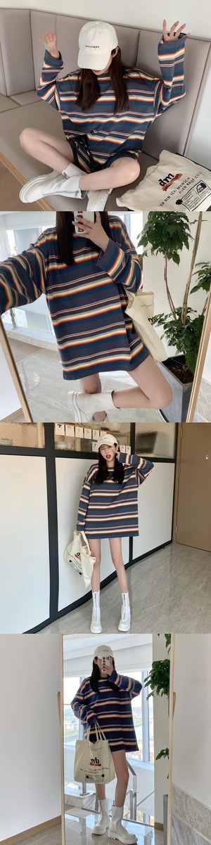 スタイルストライプTシャツ オータムルーズ薄手カラートップス ロング 秋物 クレセントシティ28343954386