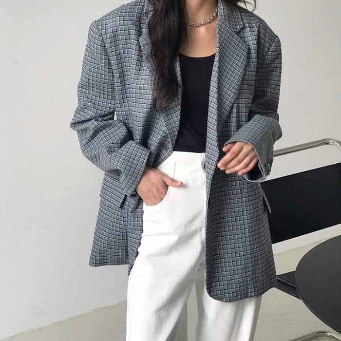 スタイル格子柄ジャケット オータムカジュアルルーズ 秋物 クレセントシティ22481978750