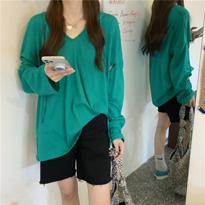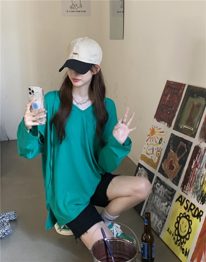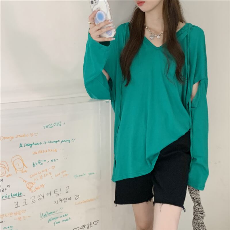 Tシャツ シャツ サマー薄手フードルーズソリッド カラートップス ロング 夏物 ソリッドカラー クレセントシティ66096483598