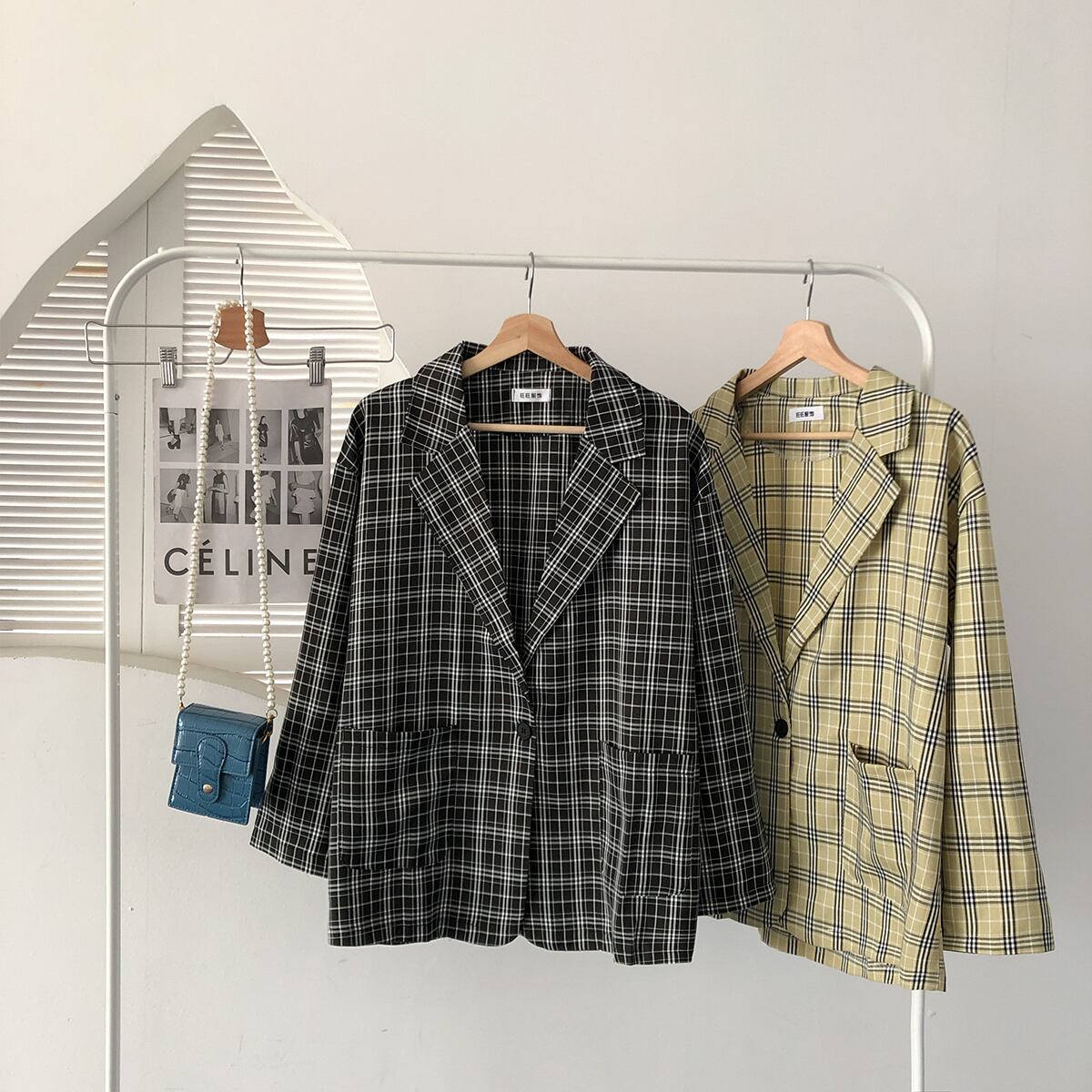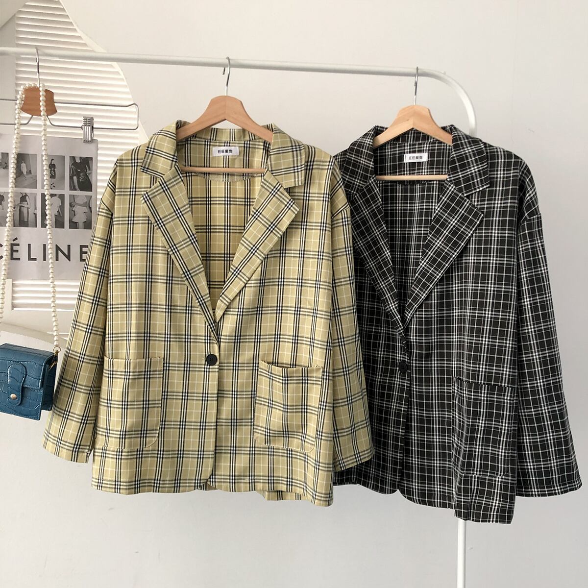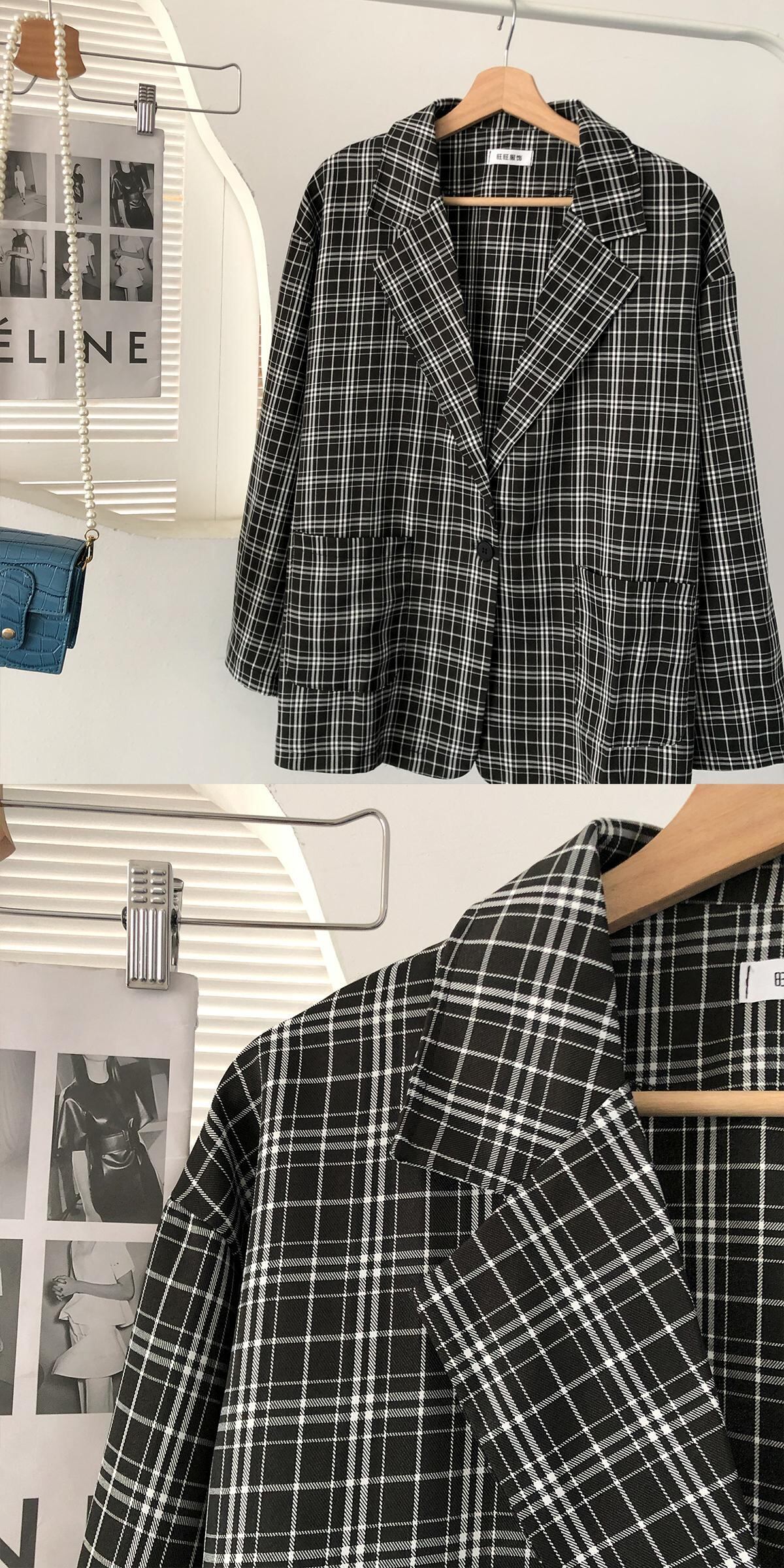 スタンダード格子柄オータムスタイルトップス ルーズ薄手ジャケット レトロ 秋物 クレセントシティ94073097689