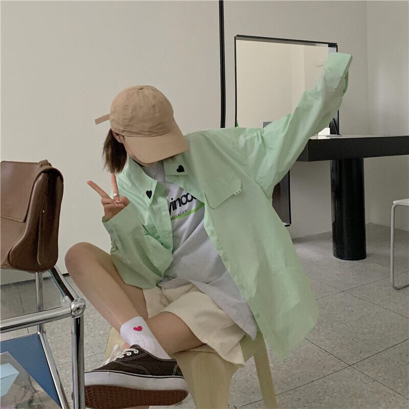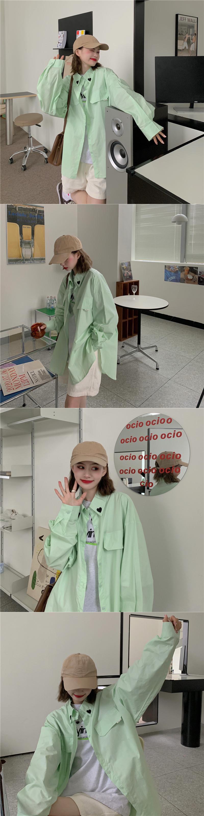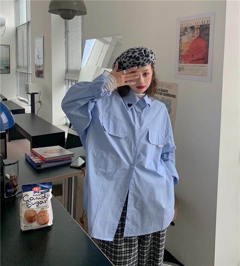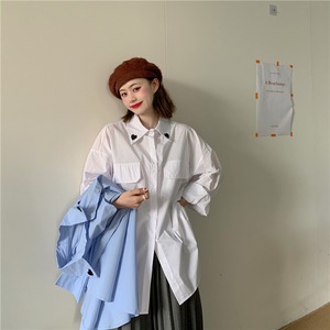 シャツ オータム刺繍ルーズカジュアルソリッド カラー ロング 秋物 ソリッドカラー クレセントシティ36253009672