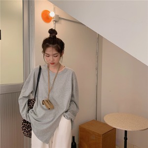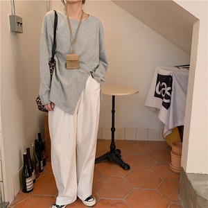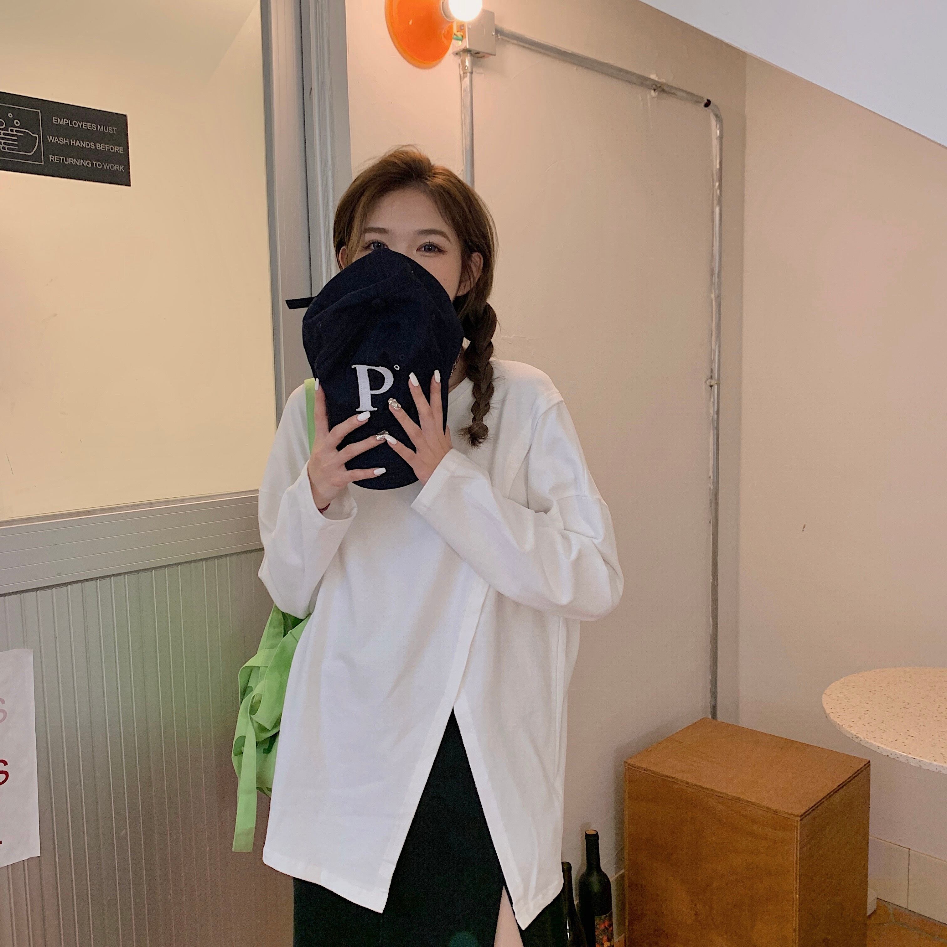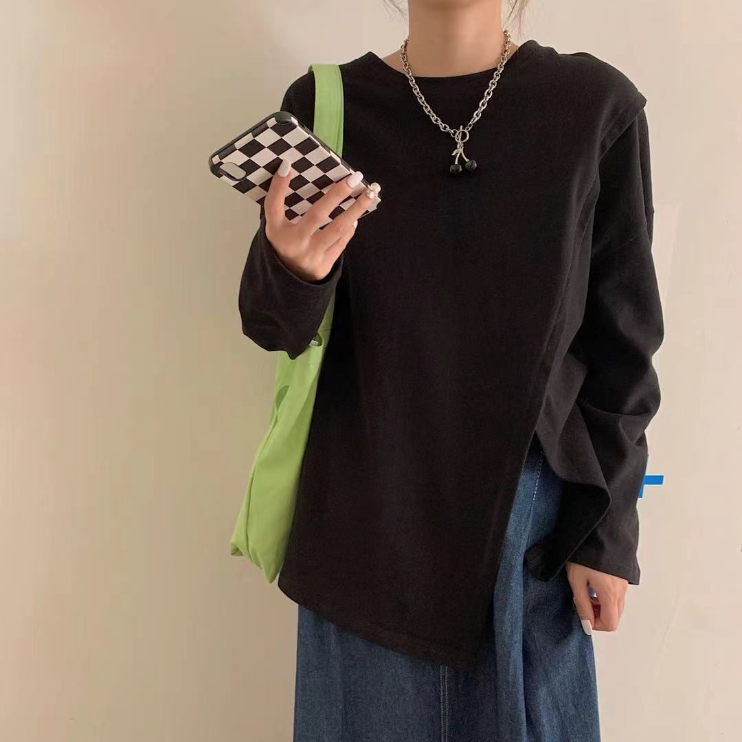 ブラックスリットTシャツ シャツ オータムルーズ薄手プルオーバー トップス ロング 秋物 クレセントシティ82349308396