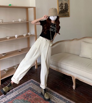 ハイウェストジーンズ レディースルーズ ホワイト クレセントシティ34872618262
