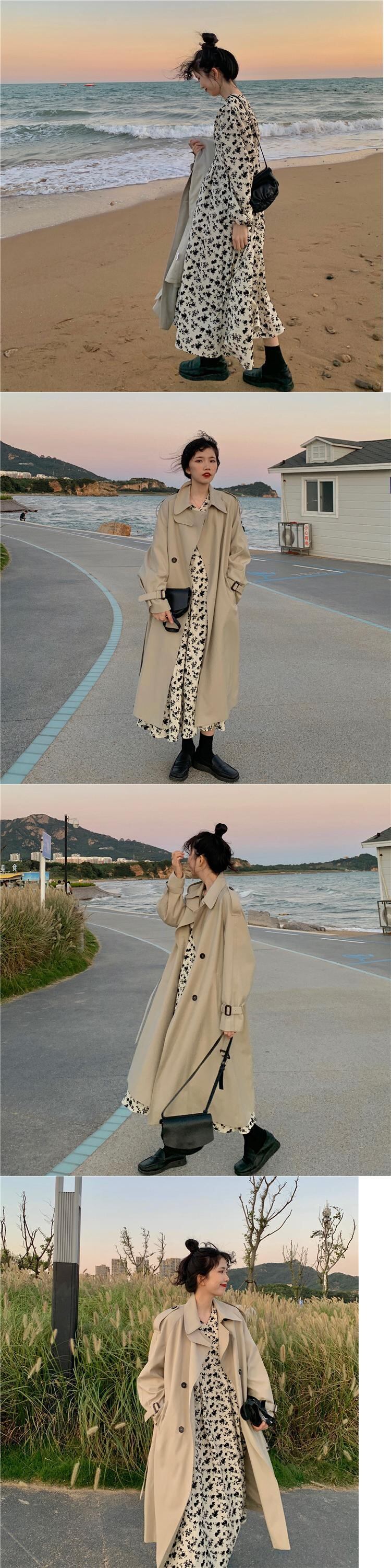 ロングジャケット オータムスタイルルーズダブルブレスト薄手コート 秋物 クレセントシティ54281265205