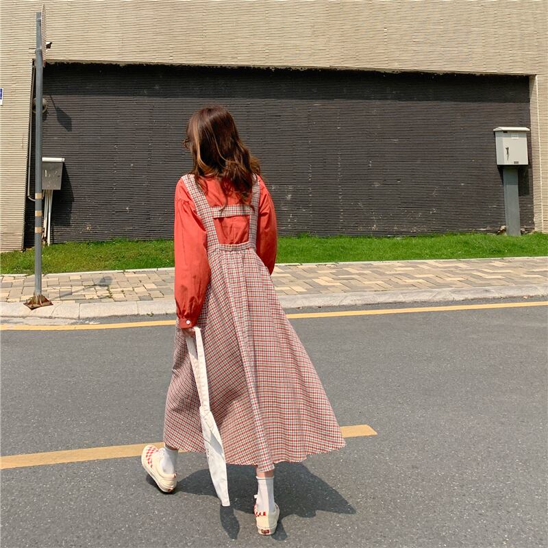 色:黄色のシャツ,オレンジ色のシャツ,黄色のストラップドレス,レッドビブスカート
