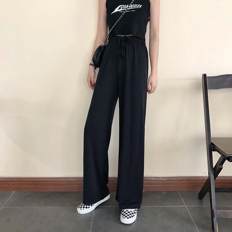 サマールーズハイウェストウェストパンツ 薄手カジュアルブラック 夏物 クレセントシティ50986924828