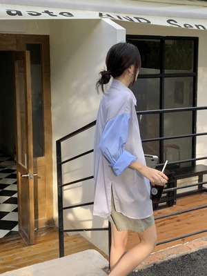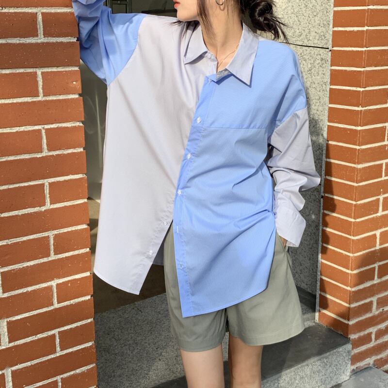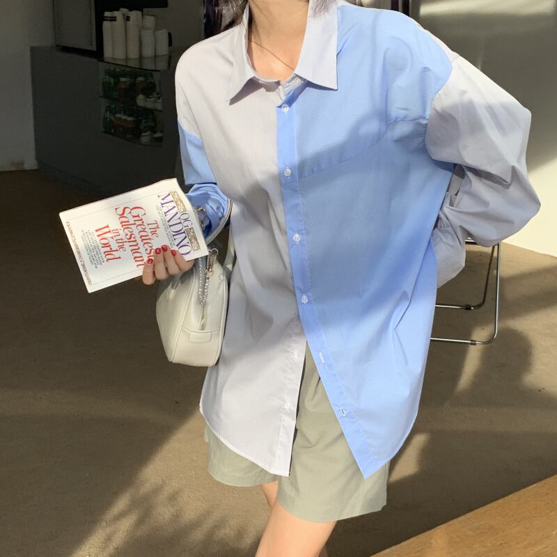カラーシャツ オータムスタイルルーズ薄手 ロング 秋物 ステッチ クレセントシティ84183003066