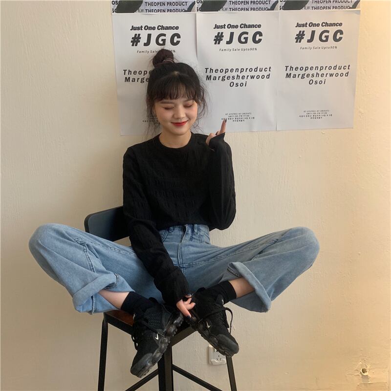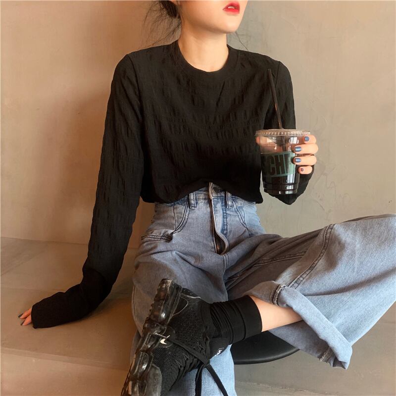ソリッド カラーTシャツ シャツ オータムルーズ薄手プルオーバー トップス ロング 秋物 ソリッドカラー クレセントシティ9399568811