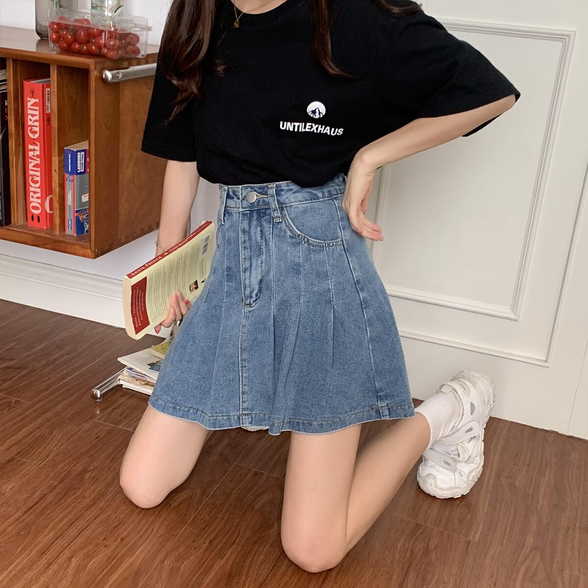ハイウェストウェストプリーツショートスカート サマー薄手Aライン 大人ガーリー スウィート キュート カジュアル 夏物 クレセントシティ40567896636