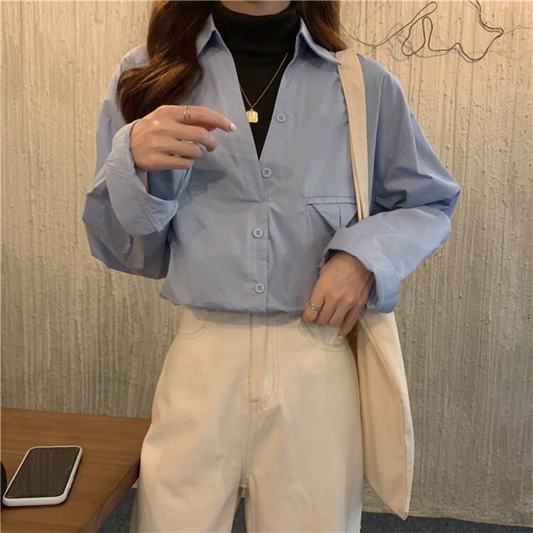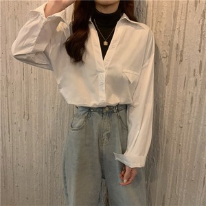 ホワイトシャツ オータムルーズ薄手カラーシャツ ロング 秋物 クレセントシティ88461656357