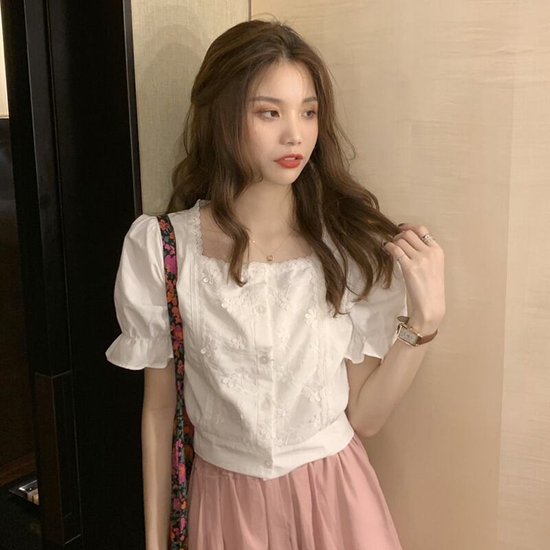サマーレースカラーショートシャツ ハイウェストウェストスカート 夏物 スクウェア クレセントシティ2844773470