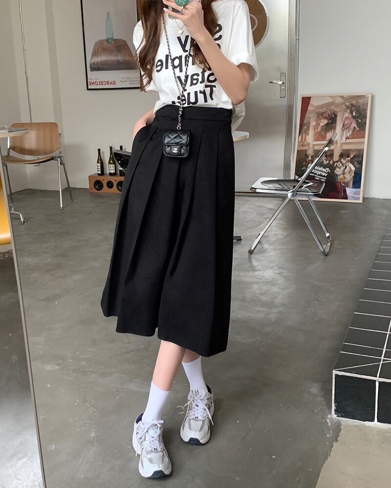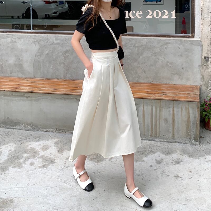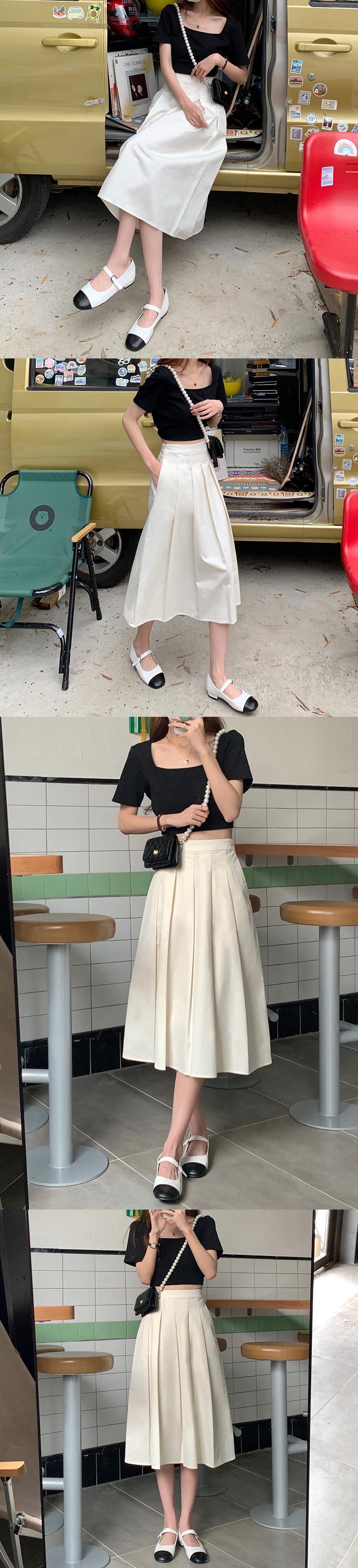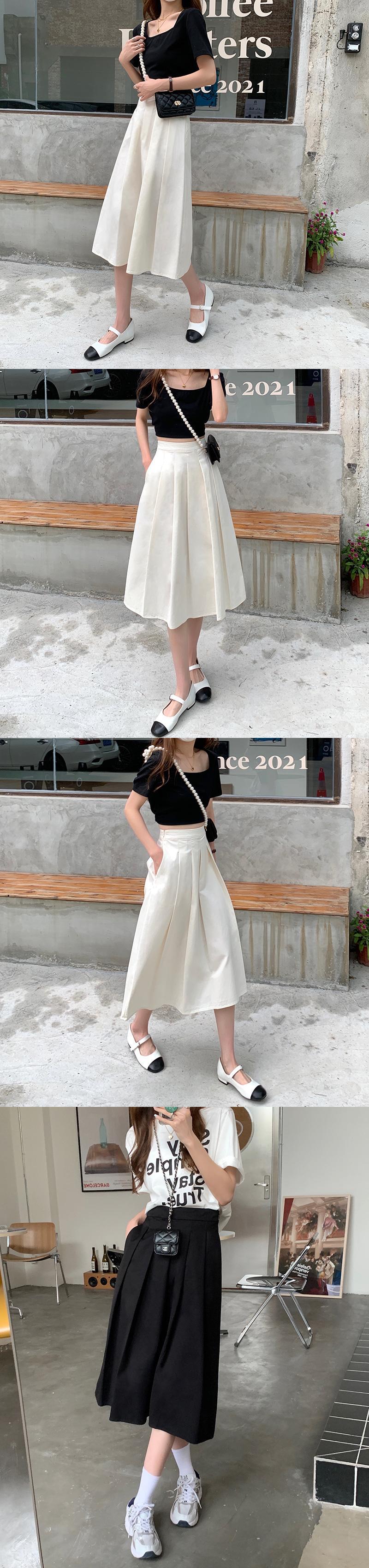 ウェストプリーツスカート サマー薄手Aライン 夏物 クレセントシティ42183212874