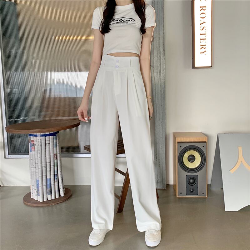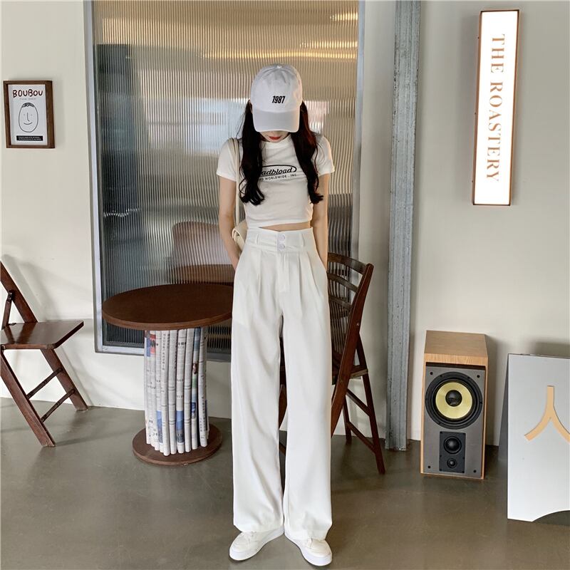 パンツ サマー薄手ルーズハイウェストホワイトカジュアル 夏物 クレセントシティ74640336194