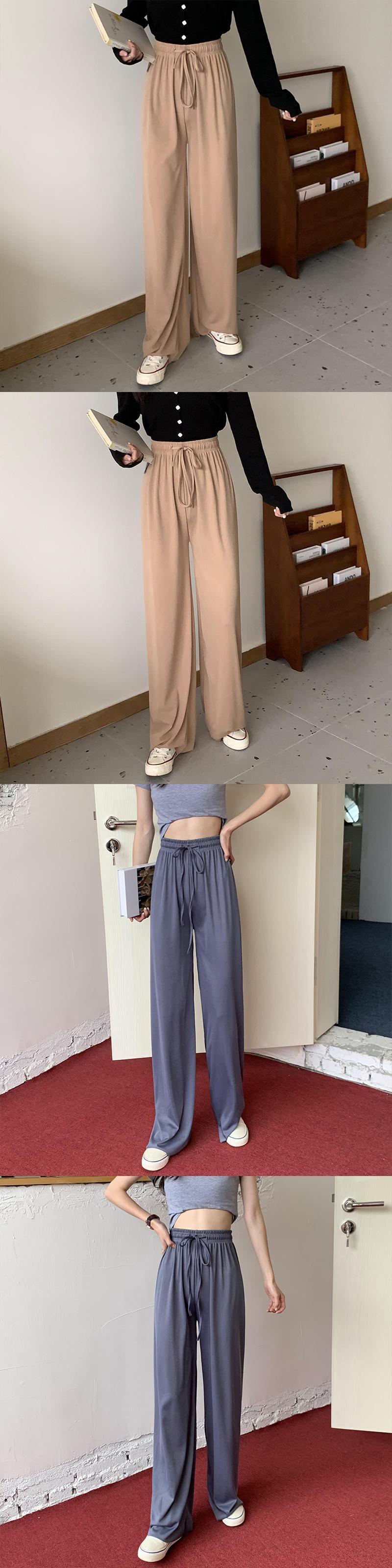 パンツ サマーストレッチウェストルーズ薄手ワイドレッグ エラスティック 伸縮 夏物 ワイドパンツ シルク クレセントシティ79343174229