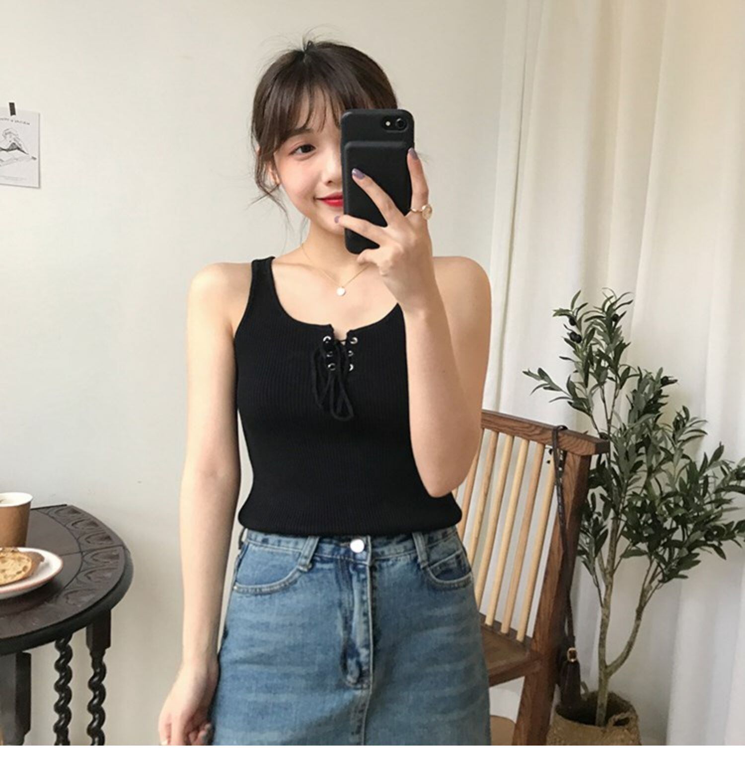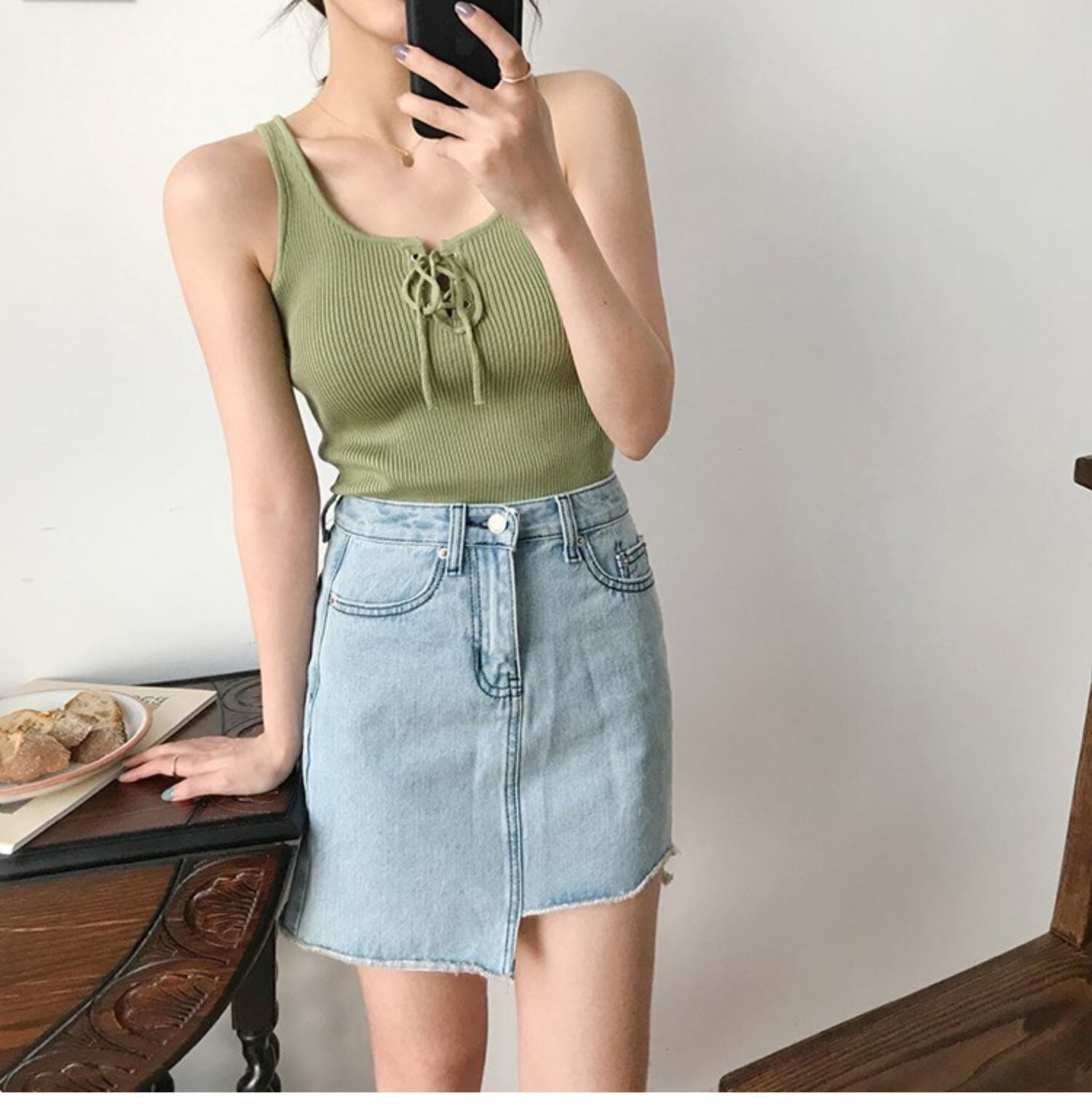ニットスリムサマーソリッド カラーシャツ トップス レース 夏物 レースアップ ソリッドカラー クレセントシティ34125976496