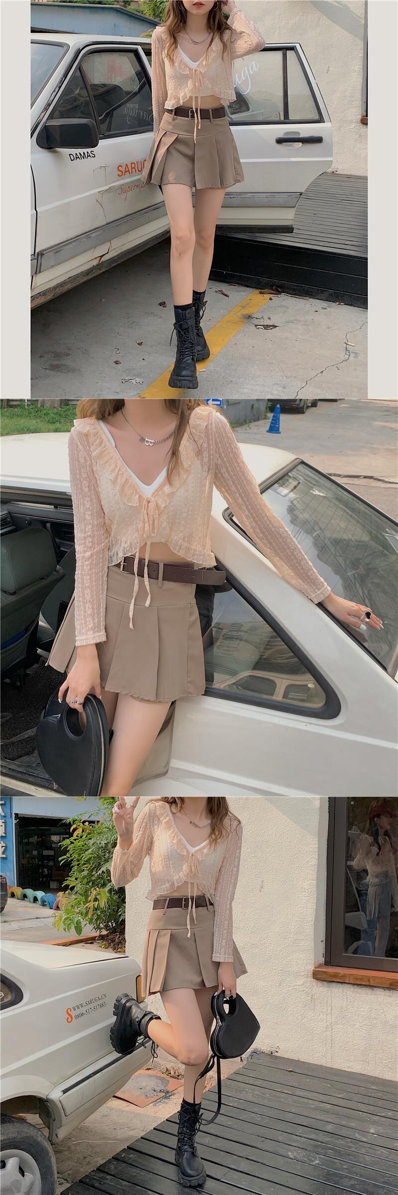 スカート オータムスタイルVネックレースカーディガンハイウェストウェストプリーツショート 大人ガーリー スウィート キュート カジュアル 秋物 クレセントシティ21152979484