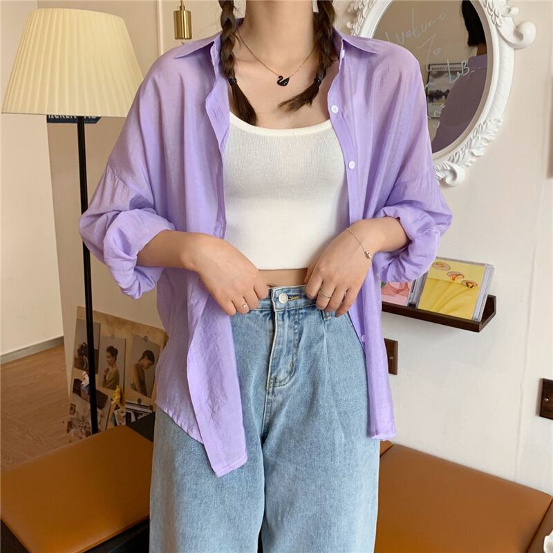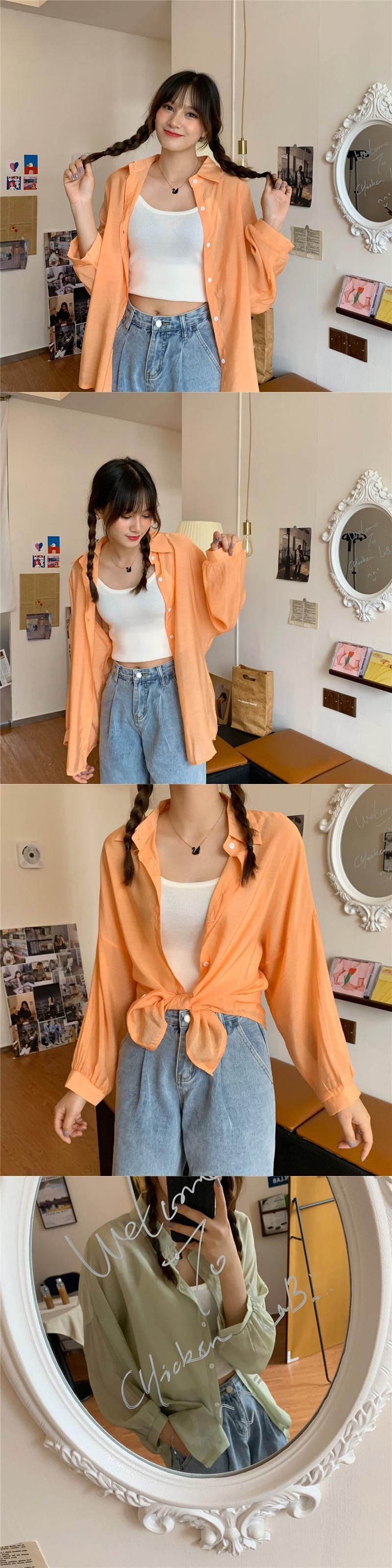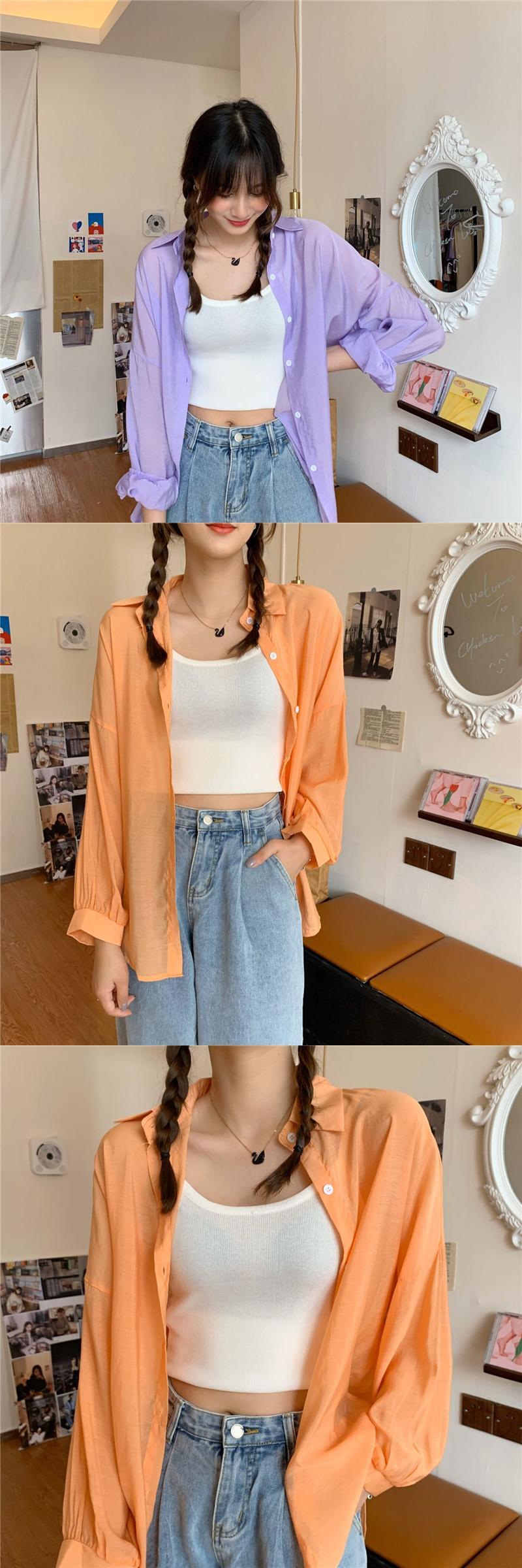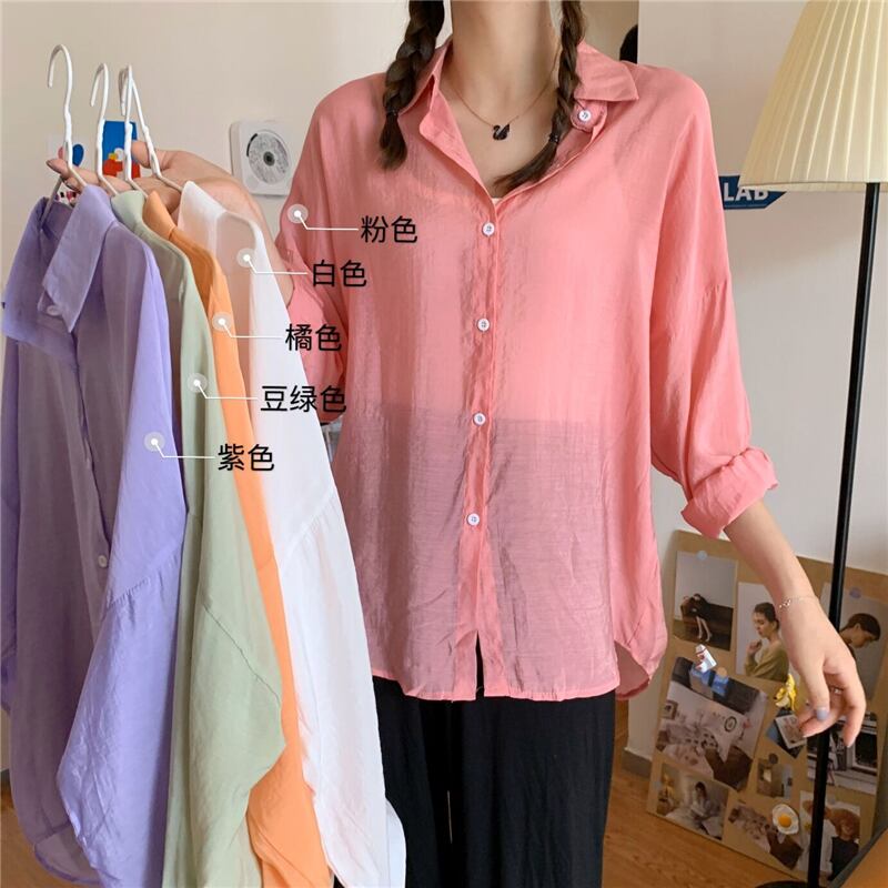 薄手ソリッド カラーシャツ レディースサマールーズカジュアル ロング 夏物 ソリッドカラー クレセントシティ73602889565
