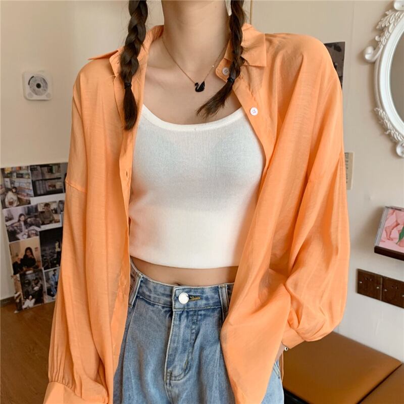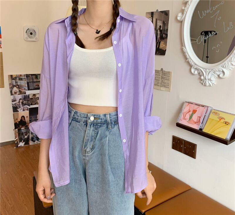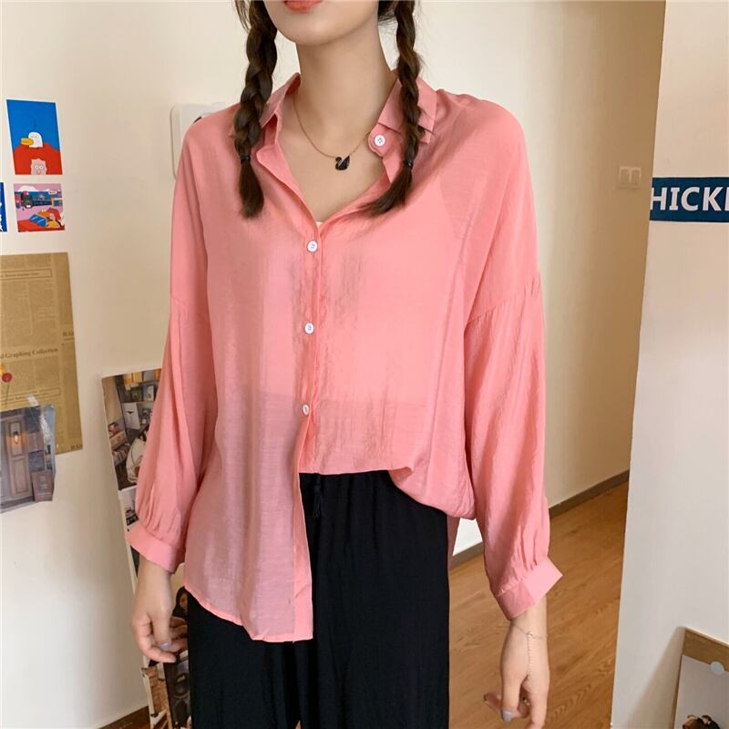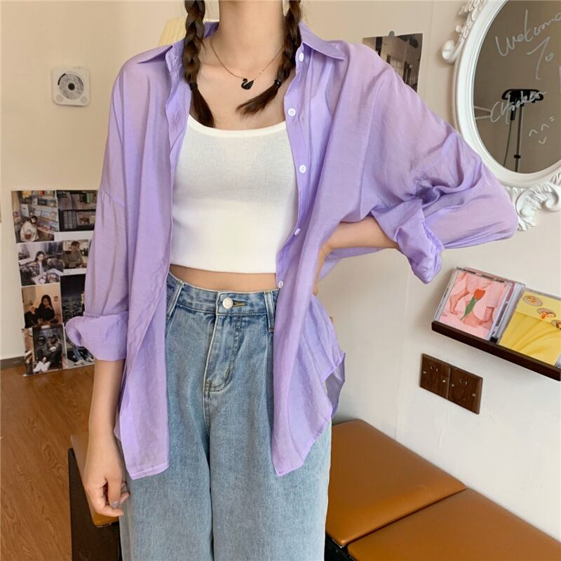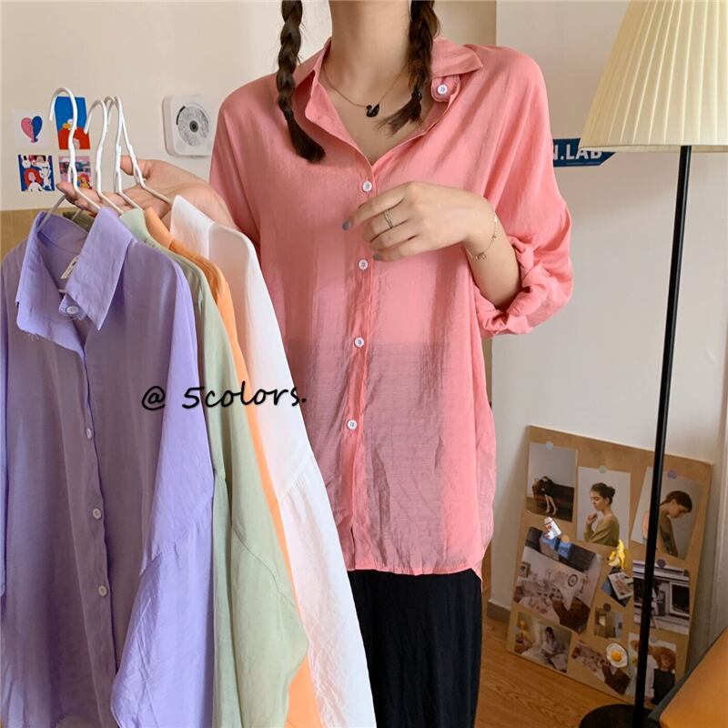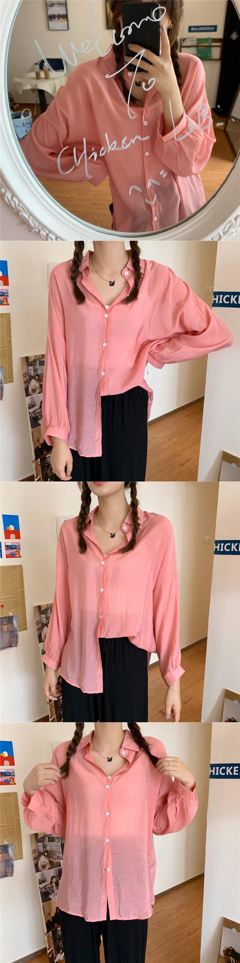 薄手ソリッド カラーシャツ レディースサマールーズカジュアル ロング 夏物 ソリッドカラー クレセントシティ73602889565