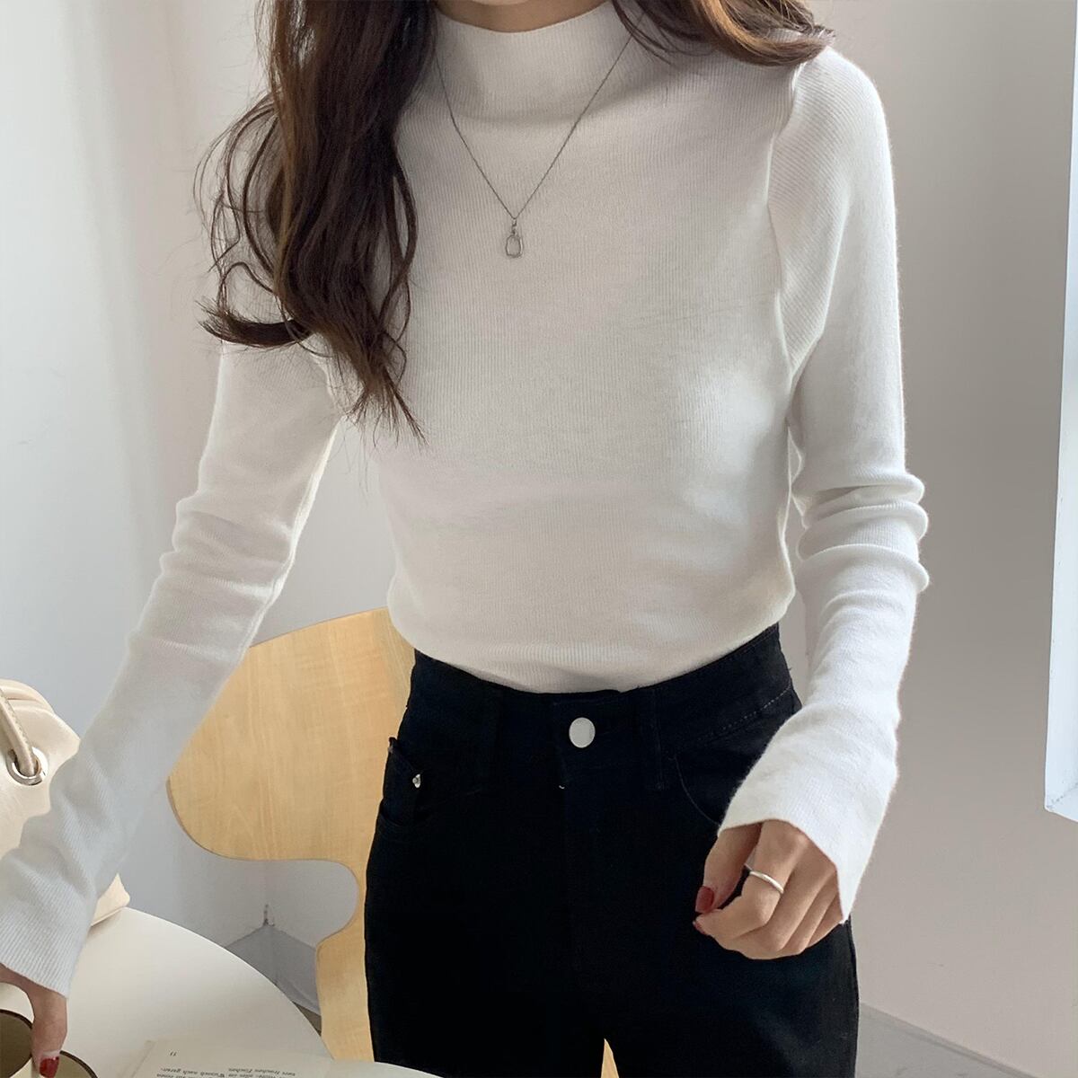 ソリッド カラーセーター レディースオータムウィンタースタイルスリムプルオーバー ロング 秋物 冬物 ソリッドカラー クレセントシティ12516927658