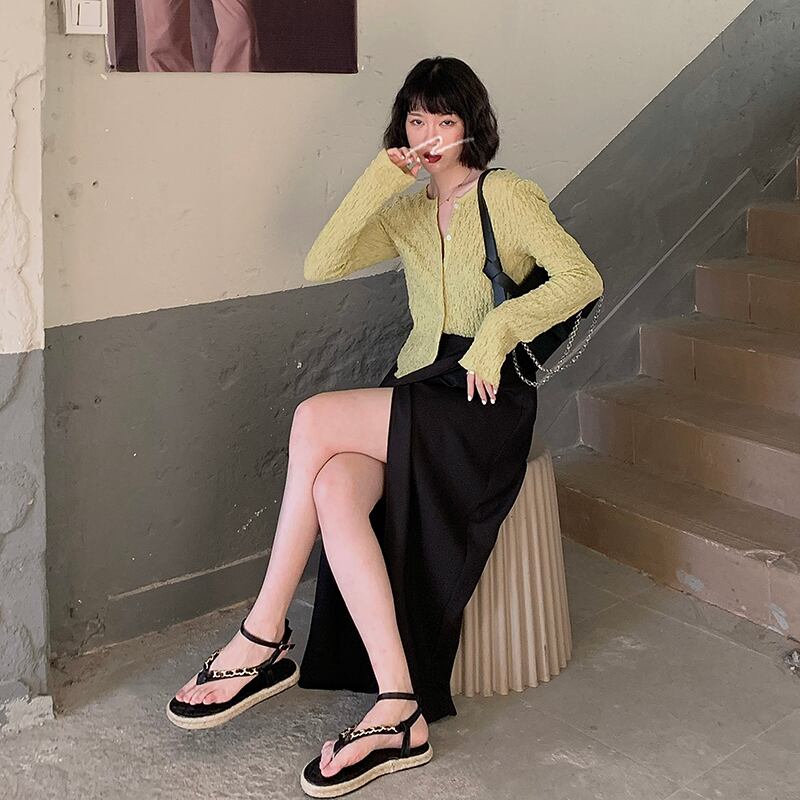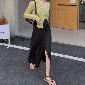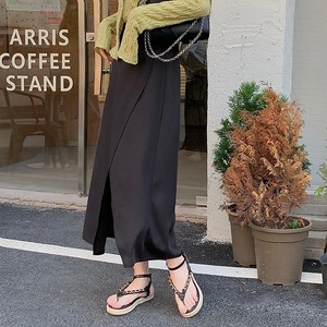 ブラックスリットスカート サマー薄手ハイウェストウェストAライン 夏物 クレセントシティ61584184676