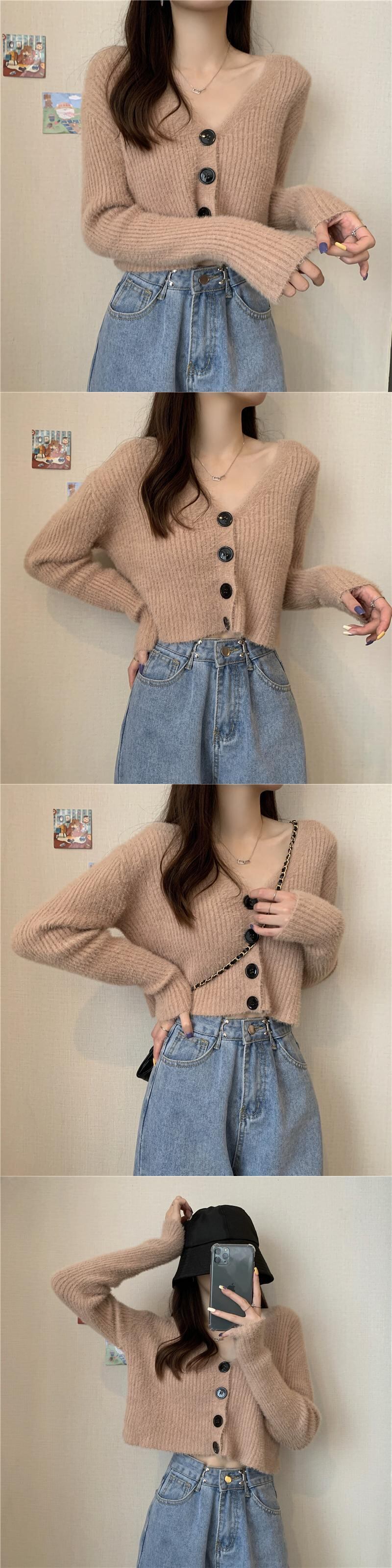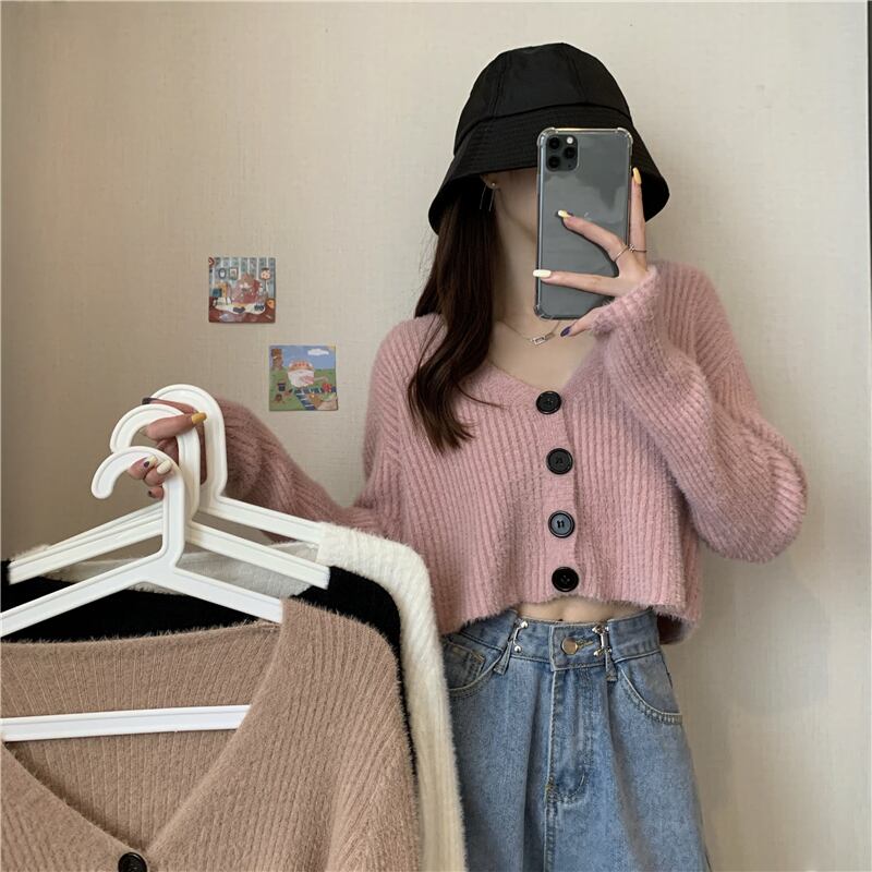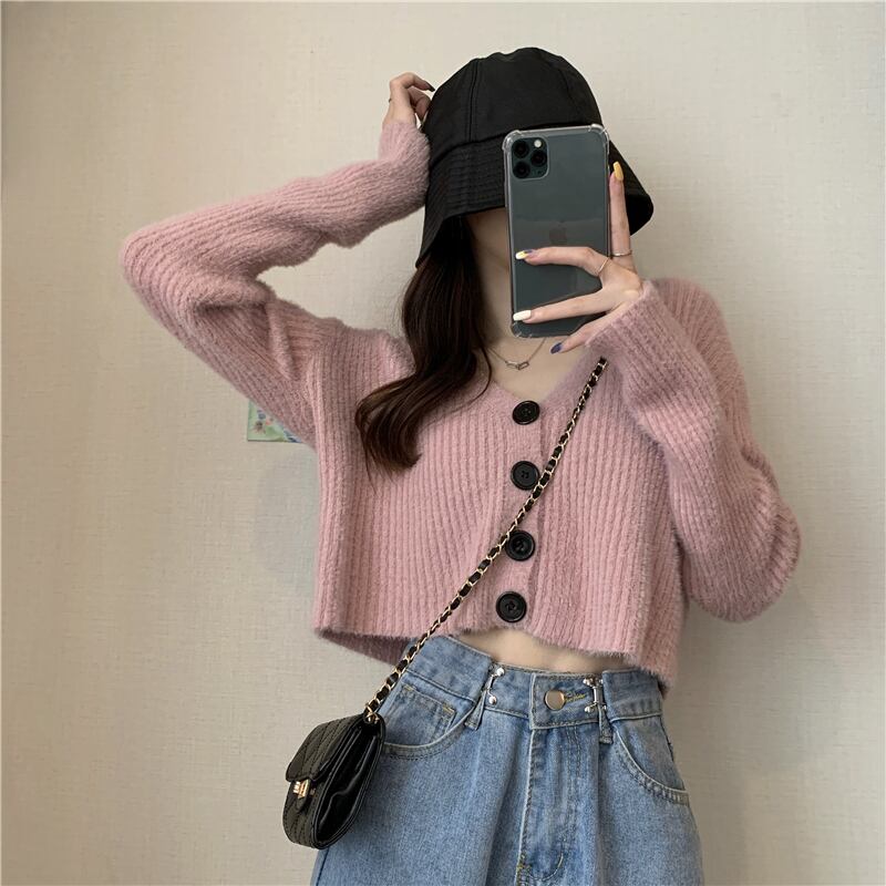 スタイルショートセーター コート オータムルーズVネックカーディガントップス 秋物 クレセントシティ78953469844