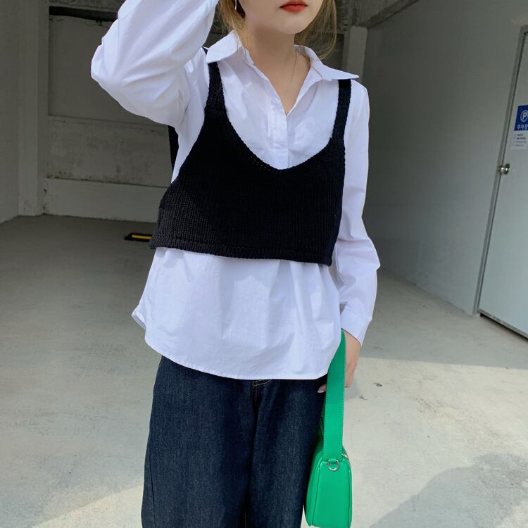 色:白のシャツ,ブラックサスペンダー