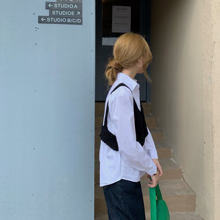 オータムカジュアルルーズホワイトシャツ ショート 秋物 クレセントシティ692900799