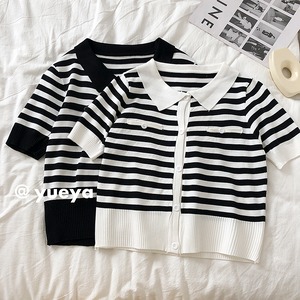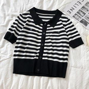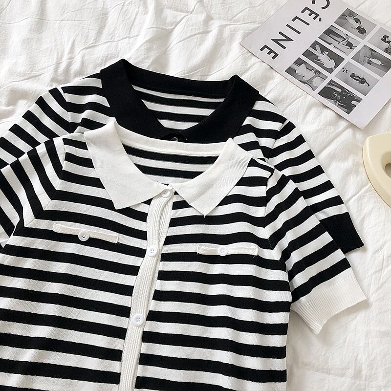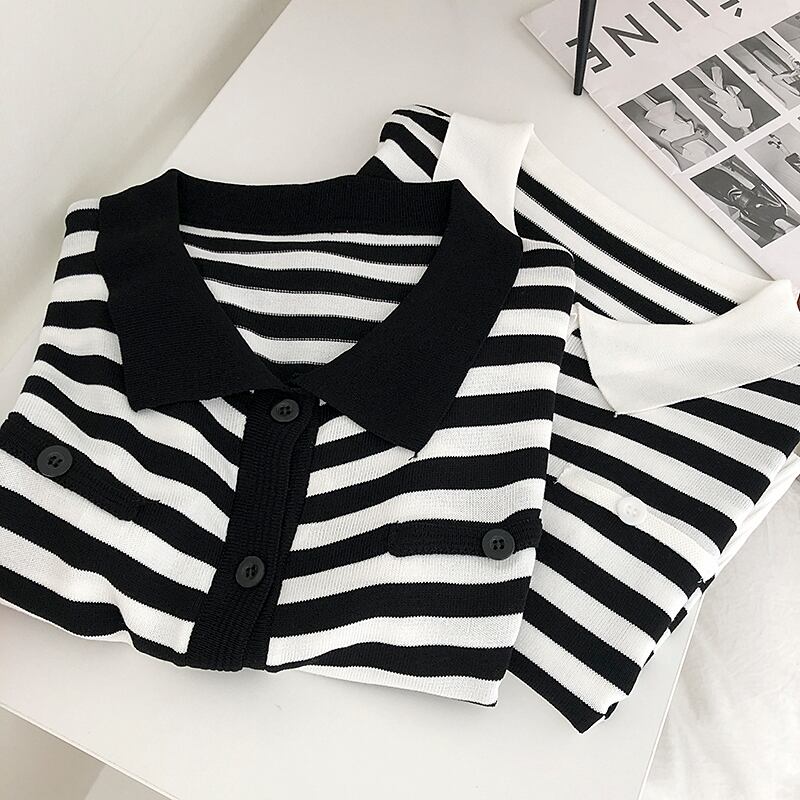 スタンダードカラーストライプセーター レディースサマーカーディガンルーズトップス レトロ 夏物 クレセントシティ83781607014