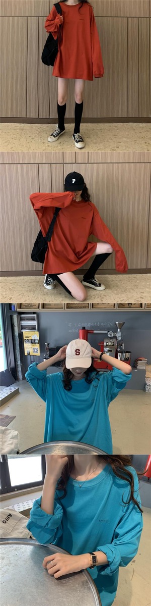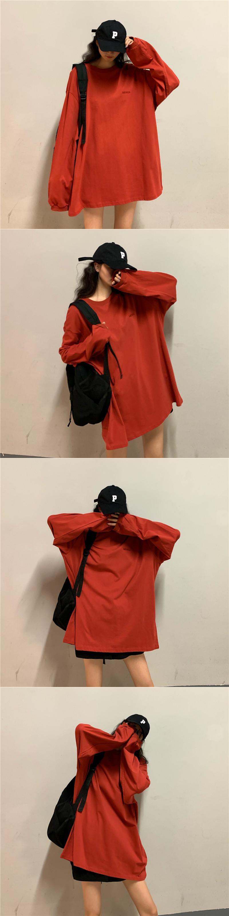 Tシャツ オータムスタイルルーズ薄手トップス レッド 刺繍 秋物 クレセントシティ89879585399