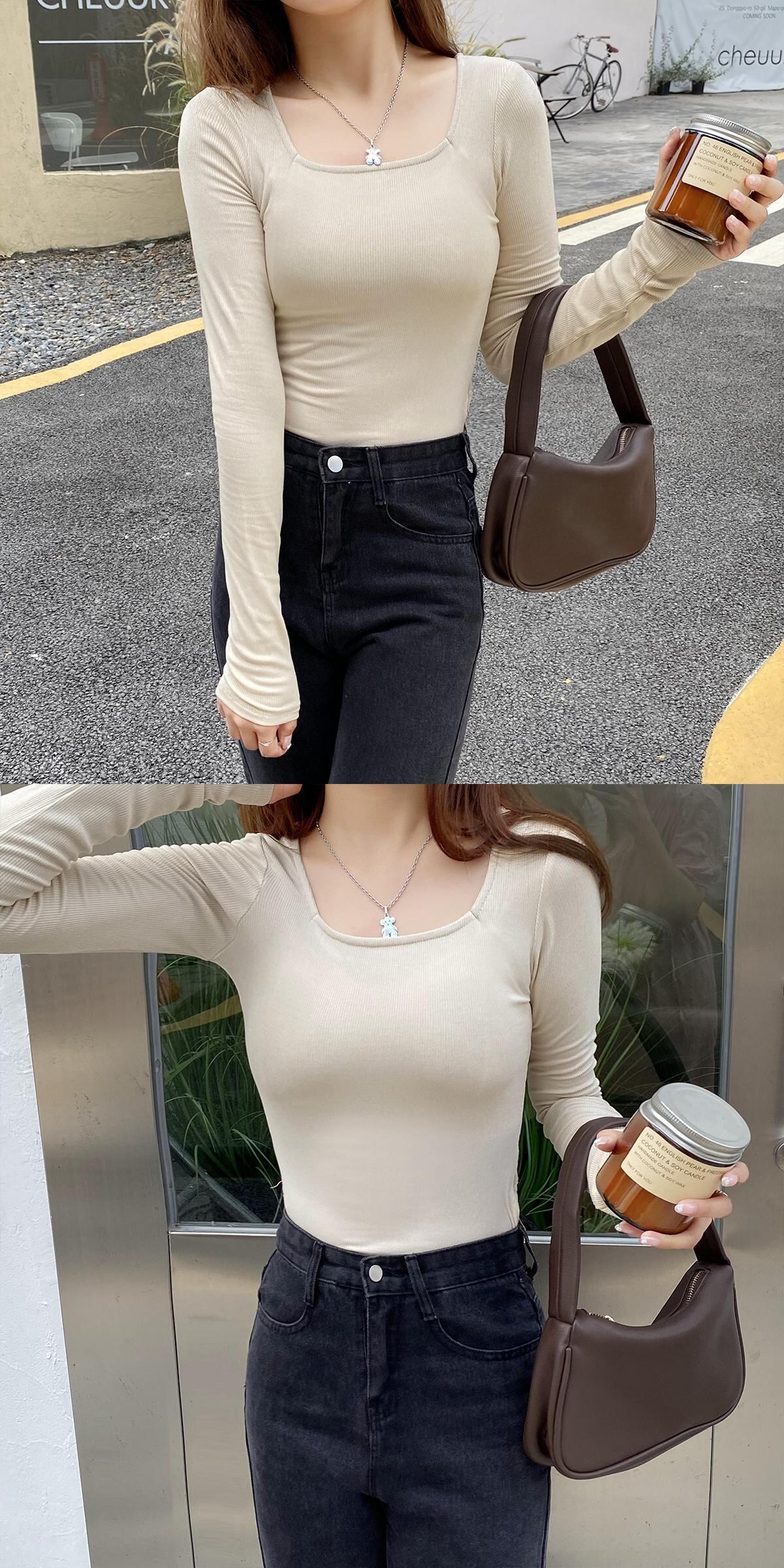 長袖スリーブTシャツ シャツ オータムカラースリムトップス ロング 秋物 ピュア スクウェア クレセントシティ84352811020
