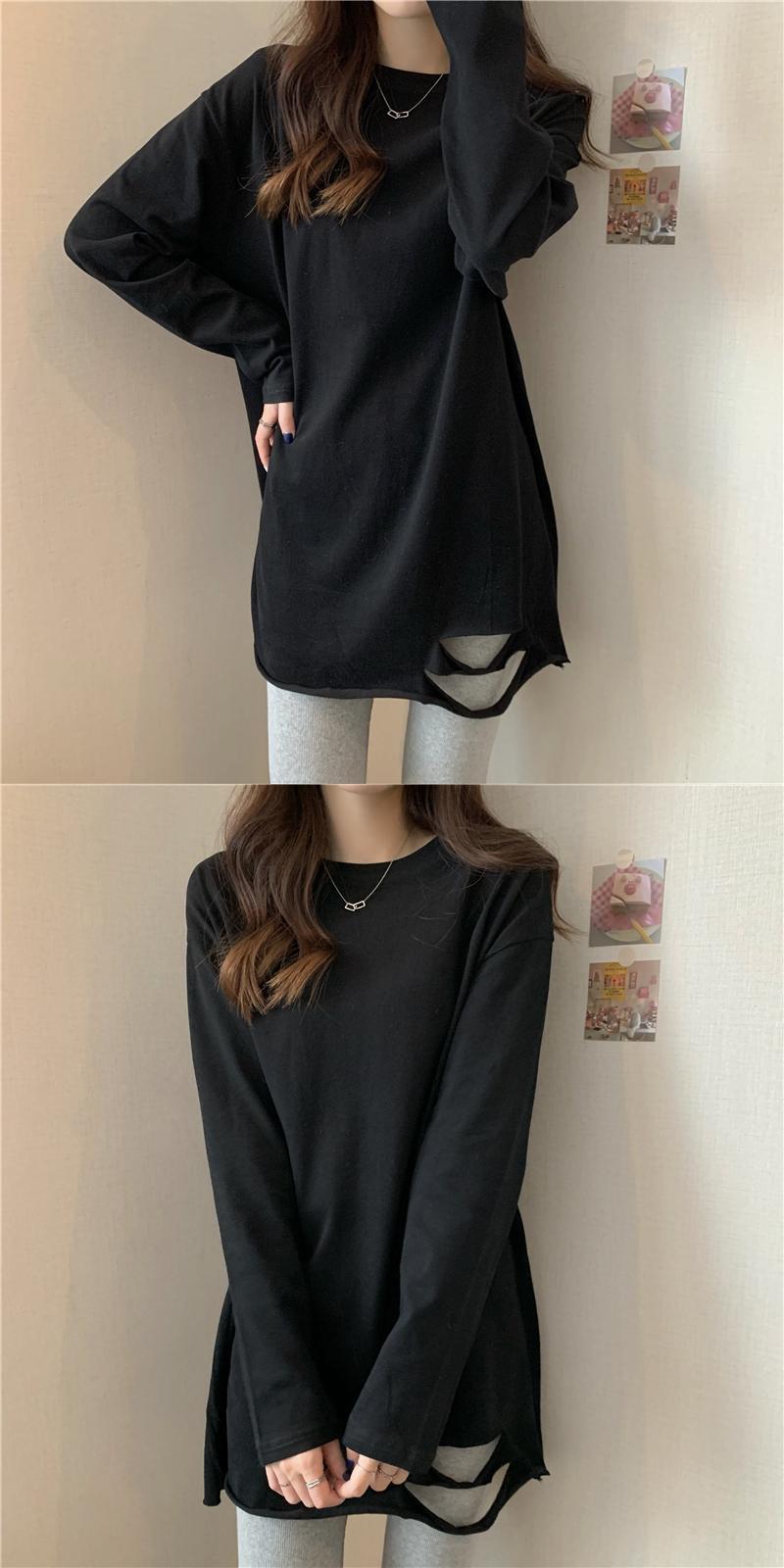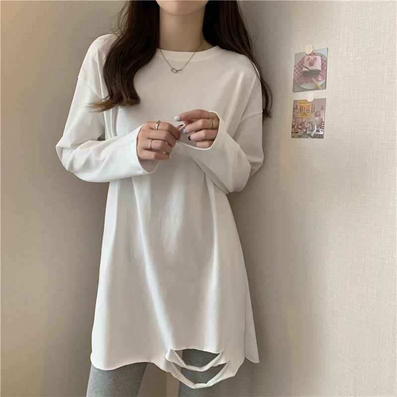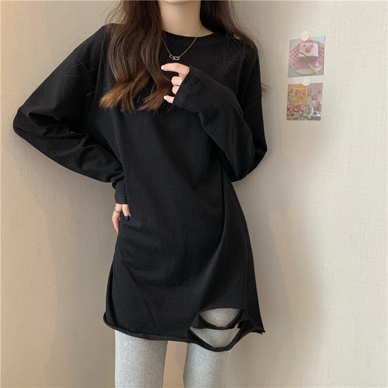 Tシャツ オータムルーズソリッド カラートップス ロング 秋物 ソリッドカラー クレセントシティ580377039