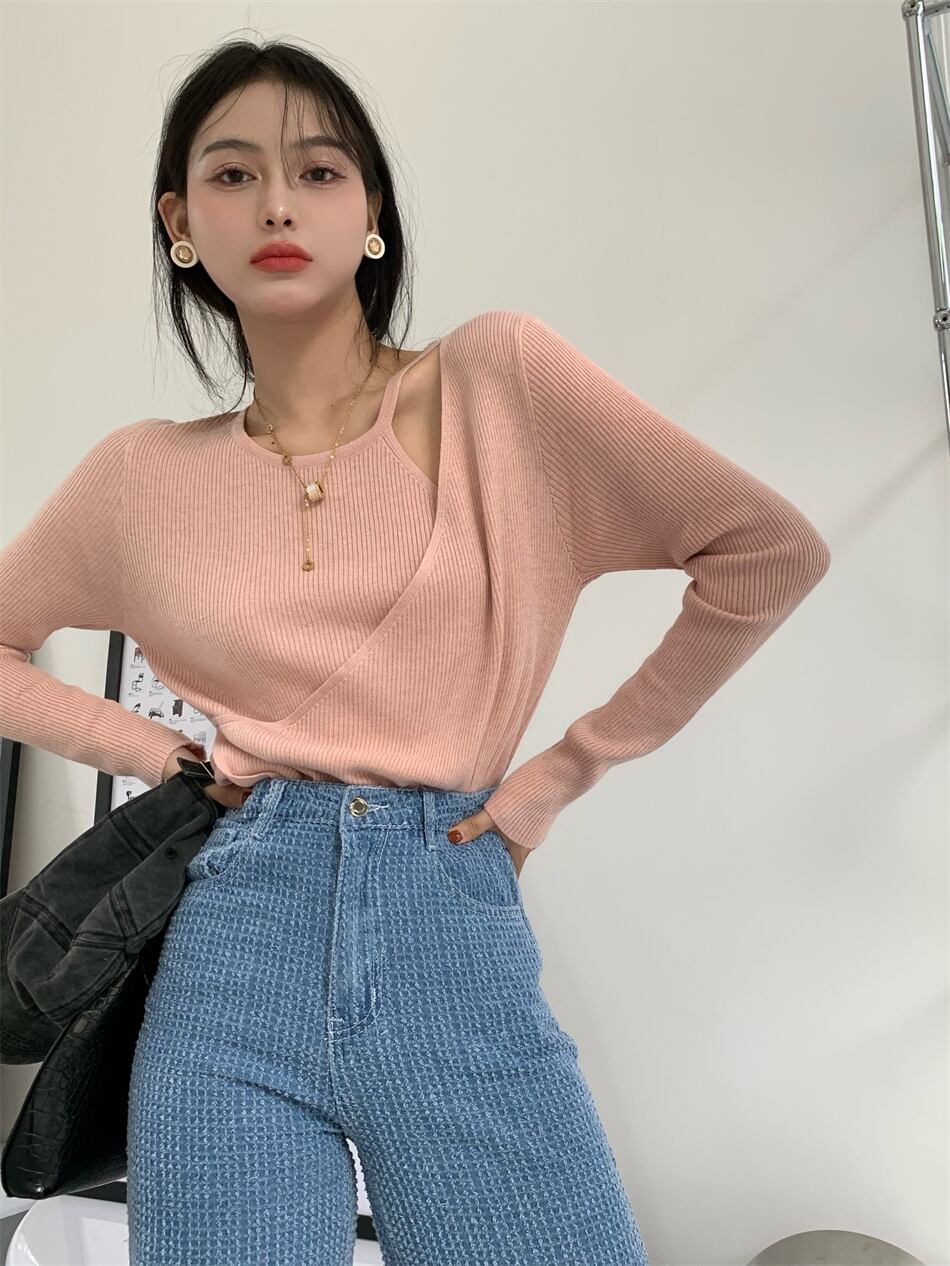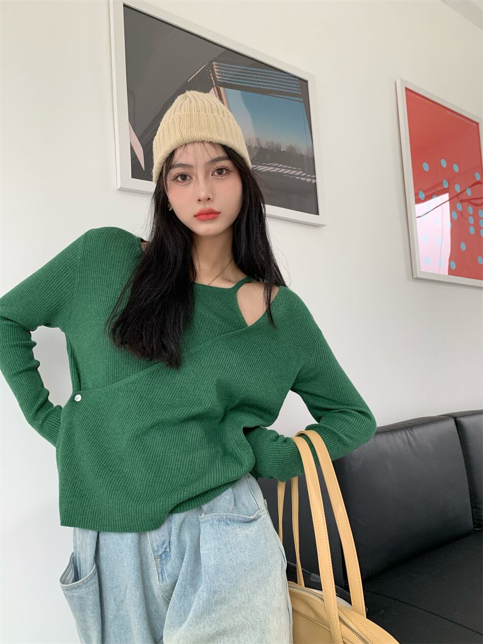セーター オータムクロスルーズソリッド カラーシャツ スタイルブラウス ロング 秋物 ソリッドカラー クレセントシティ83422342640