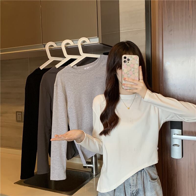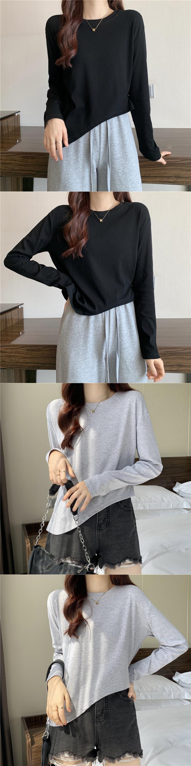 Tシャツ オータムルーズ薄手ソリッド カラートップス ロング 秋物 ソリッドカラー クレセントシティ66874041924